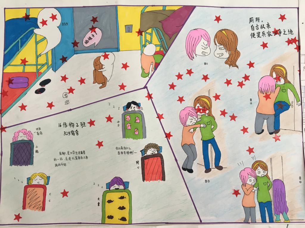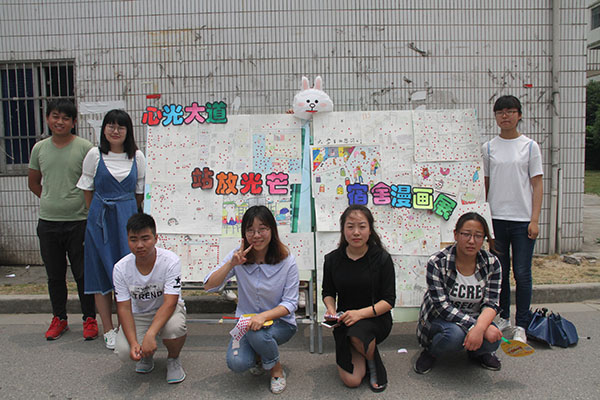 6月6日中午,农学园艺系心育部以“心光大道,绽放光芒”为主题在食堂门口开展了“心理画外音”宿舍生活漫画展活动。