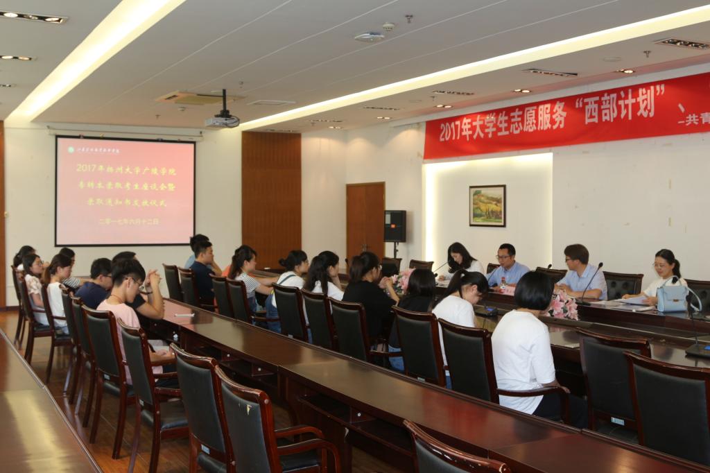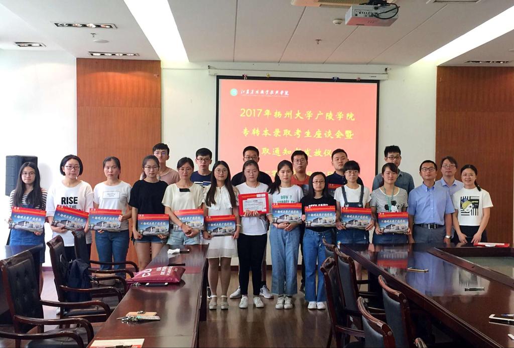 6月12日,扬州大学广陵学院综合办副主任张小兴一行2人访问永利官网,举行2017年专转本录取考生座谈会暨录取通知书发放仪式。学工处相关负责同志和20名被录取学生参加了座谈会。