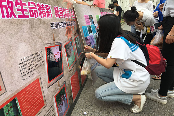 活动现场,展出了提前面向院师生征集的“幸福模样”照片制作而成的“幸福纪念册”。纪念册上有朦胧的背影、搞怪的自拍、可爱的宿舍合照、壮观的班级全家福、趣味的街拍还有很多闺蜜、情侣甜蜜合照。照片中的画面给过往师生带来了强烈的视觉冲击,用最直接的方式触动着同学们的心灵,那些瞬间的幸福、美好通过这一张张照片汇聚在了一起,集成了大大的“幸福的模样”,温暖着人心。