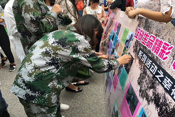 9月22日中午,农学园艺学院心育部在食堂门口开展“绽放生命精彩,畅享绚丽人生”系列之幸福纪念册活动。