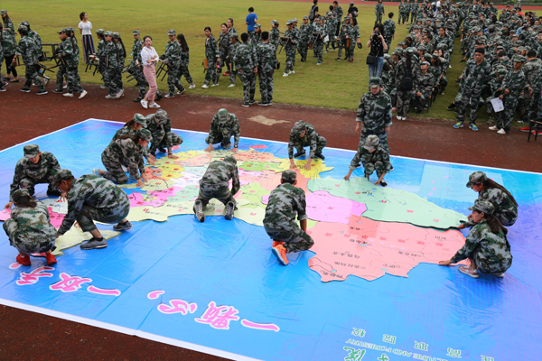 在“印象祖国”画展活动中,通过前期征集,校区分团委共收到48幅来自不同班级新生的手绘图,这些图饱含了同学们对祖国山河的热爱之情;在“祖国,请听我说”环节中,来自全国24个省份的新生代表在国庆到来之际纷纷说出了对祖国的祝福语;在“一颗心,一双手,共绘祖国蓝图”中,24个新生代表共同拼出中国地图,寓意着祖国的发展需要我们团结一心,美好的未来需要每一个人的双手共同来创造。最后,活动在2000余名新生嘹亮的口号“我以我心爱祖国,我以我行报祖国”中圆满结束。