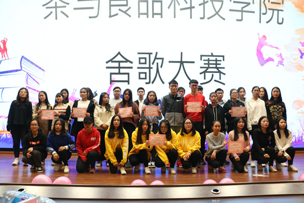 11月4日晚,茶与食品科技学院心育部、文体部在图书馆报告厅举办“我行我宿舍放青春”舍歌大赛,该院全体学生参加了此次活动。