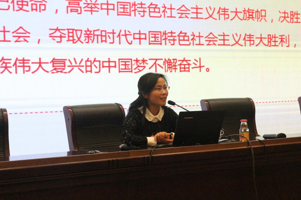 报告会上,李丽副教授从十三个方面深入浅出的阐述了十九大报告,并指出青年一代有理想、有本领、有担当,国家就有前途,民族就有希望。中国梦是历史的、现实的,也是未来的,广大学子要深入学习领会党的十九大精神,全面准确把握精神实质和丰富内涵,切实把思想和行动统一到党的十九大精神上来。