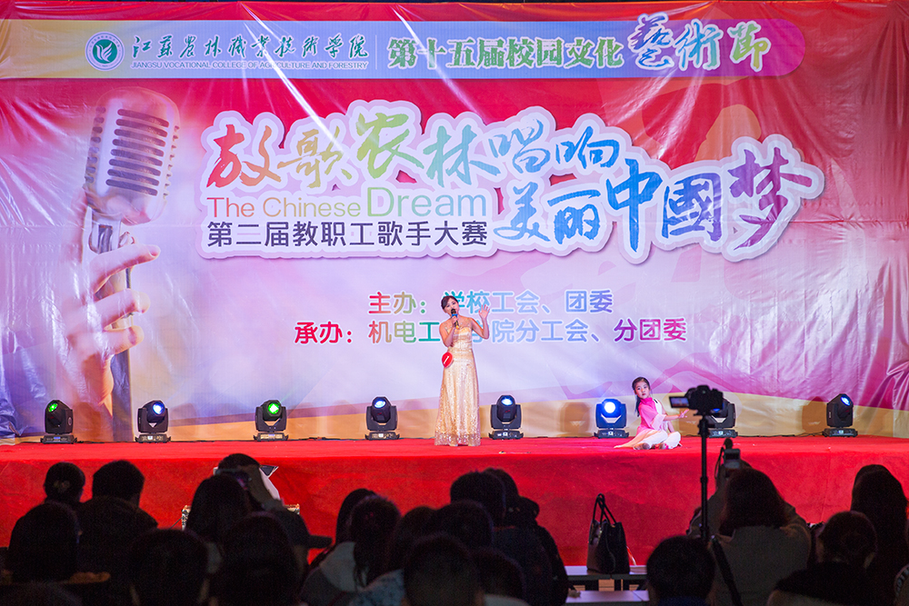 11月21日晚,由校工会、校团委主办,机电工程学院承办的第十五届校园文化艺术节之“放歌农林唱响美丽中国梦”第二届教职工歌手大赛在体育馆开唱。学校工会主席江德明出席了比赛并致辞。