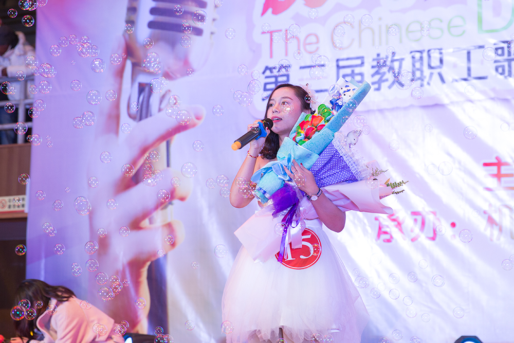 由各分工会选出的十六位老师一展歌喉,进行了精彩的演唱和激烈的角逐。最终,综合分工会的傅浩兰和茅山校区分工会的笪奇两位老师荣获比赛一等奖,直属分工会的邰燕老师以其精巧的舞台设计和独特的表演风格获得“最佳台风歌手”奖,茅山校区分工会的王建才老师在微信投票中脱颖而出,获得“最具人气歌手”奖。