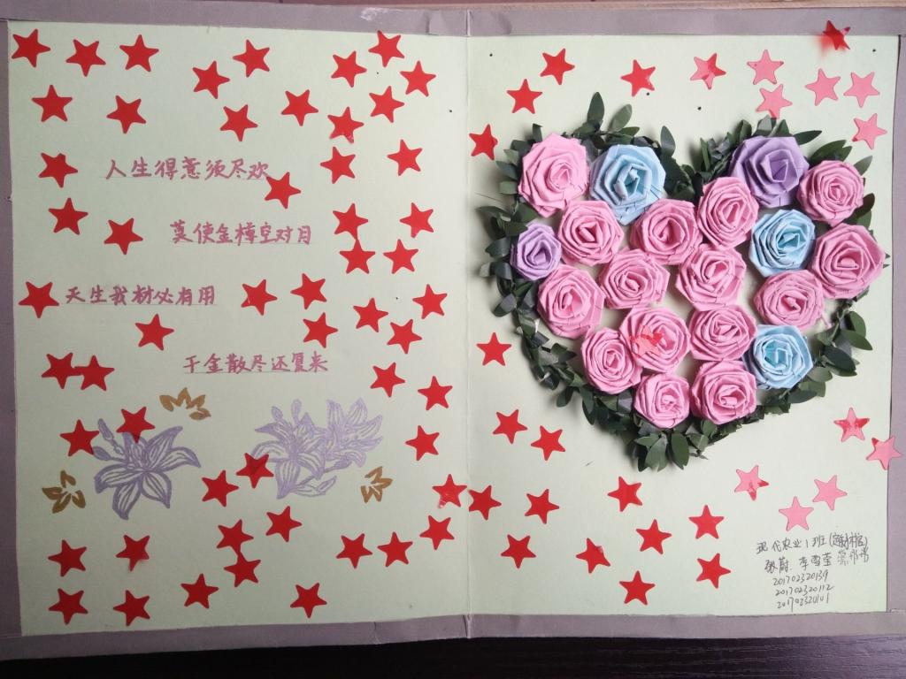 本次活动要求同学们以亲人,朋友,恋人,老师、同学、学校等为对象,以纸质卡片为主,纯手工制造,这样不仅可以将每个人的真情倾注在上面,同时也锻炼了大家的动手能力,丰富课余生活。在当天贺卡展活动中,一张张精致的卡片融合同学们的奇思妙想,有的绘画精美,有的创意独特,有的流露真情,让人目不暇接。过往的同学纷纷驻足欣赏,为心仪的贺卡投上自己宝贵的一票。通过学生投票,评出了最佳人气奖以及最佳组织奖。