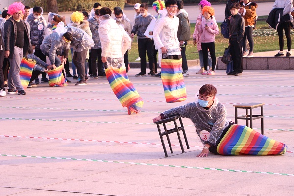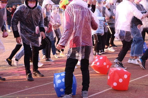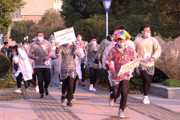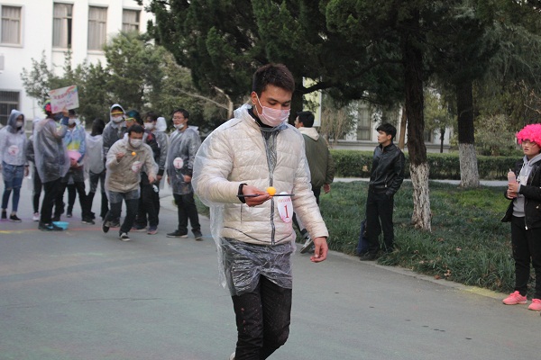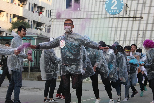 参赛选手们在领跑员的带领下,由体育场出发,全程共经过设立于体育场、励志广场及图书馆前等地的红、蓝、绿、黄、紫五个彩色站,且每个彩色站都有工作人员向参赛选手喷洒各色粉末,途中的心理知识填空、袋鼠跳接力、单脚火车跑、夹球跑接力等趣味游戏让欢笑声充满校园的各个角落。经过激烈角逐,农学园艺学院代表队荣获一等奖。