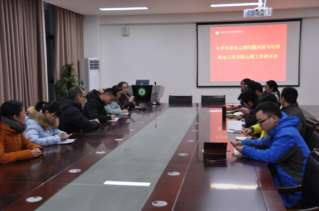12月13日,机电工程学院心理健康教育小组在该院会议室召开了“大学生常见心理问题识别与处理”主题研讨会。本次研讨会由党总支副书记李杨主持,全体班主任参加。