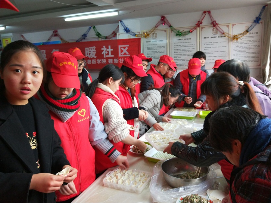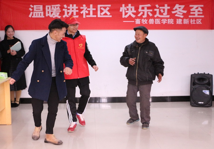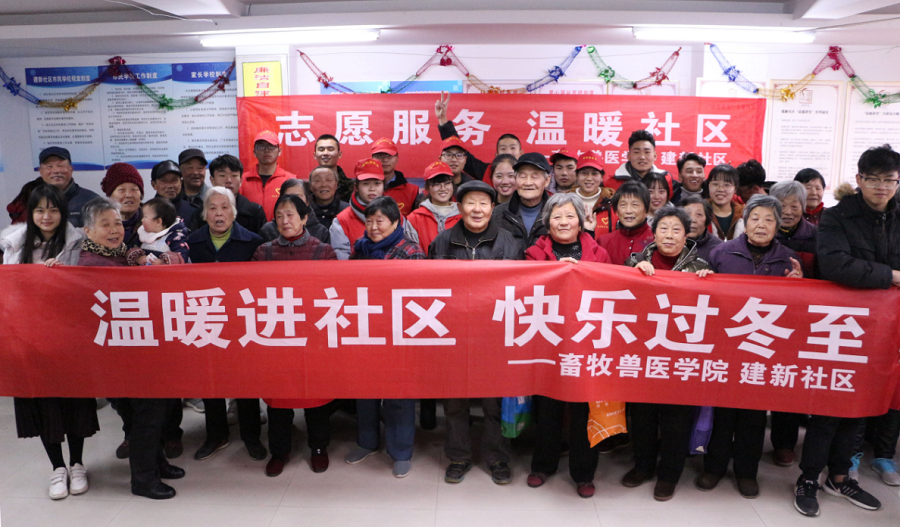 12月21日,畜牧兽医学院党总支学生党支部学生党员代表、入党发展对象、积极分子、以及青年志愿者一行来到建新社区,为社区的老人们带来“温暖进社区快乐过冬至”志愿服务活动。