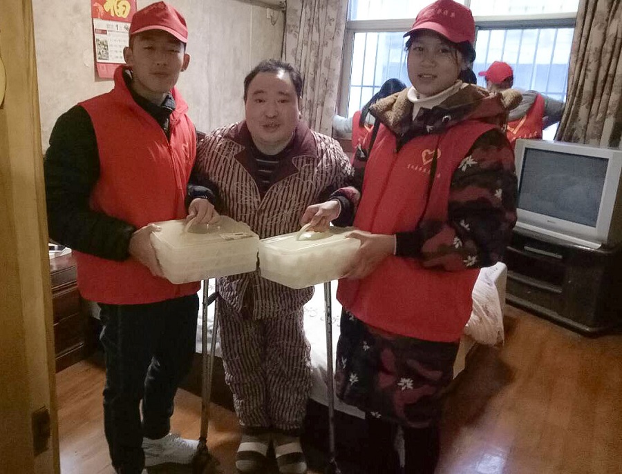 同学们不但为老人们带来精彩的表演,还邀请老人们一起参加互动节目。藏族同学教老人们跳藏族舞蹈,用藏语说“身体健康万事如意”。通过“击鼓传花”,邀请老人参与“你演我猜”活动,现场一片欢声笑语。表演后,同学们与老人们一起包饺子,煮饺子。吃过热腾腾的饺子,还为老人们戴上了爱心手套,让老人们暖暖的度过这个冬天。活动后,同学们还将煮好的饺子送到社区的孤寡残疾人家中,让他不出门也能感受到暖暖的冬至。