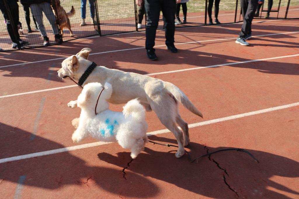 2018年1月10日下午,畜牧兽医学院爱宠创业社团举办了一场别开生面的运动会—宠物犬花样运动会。二十多条宠物犬在社团学生的带领下欢聚操场,进行抵制诱惑、快乐向前冲和才艺表演三个项目的比赛。