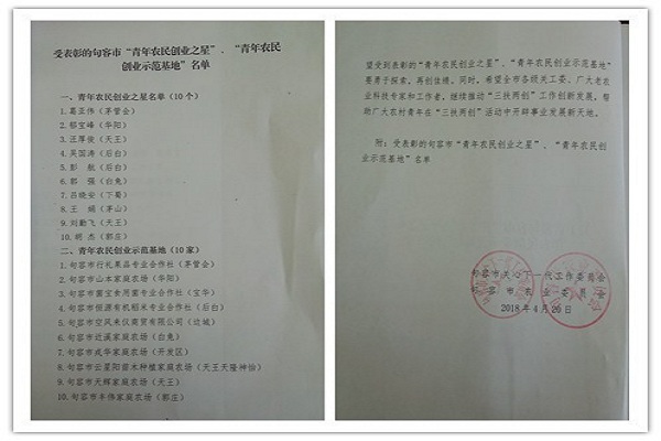 4月20日,句容市关工委“三扶两创”工作表彰会召开,大会表彰了10名“青年农民创业之星”和10个“青年农民创业示范基地”,农学园艺学院2008园艺技术班学生葛亚伟、茶与食品科技学院毕业学子郁宝峰荣获“青年农民创业之星”荣誉称号。