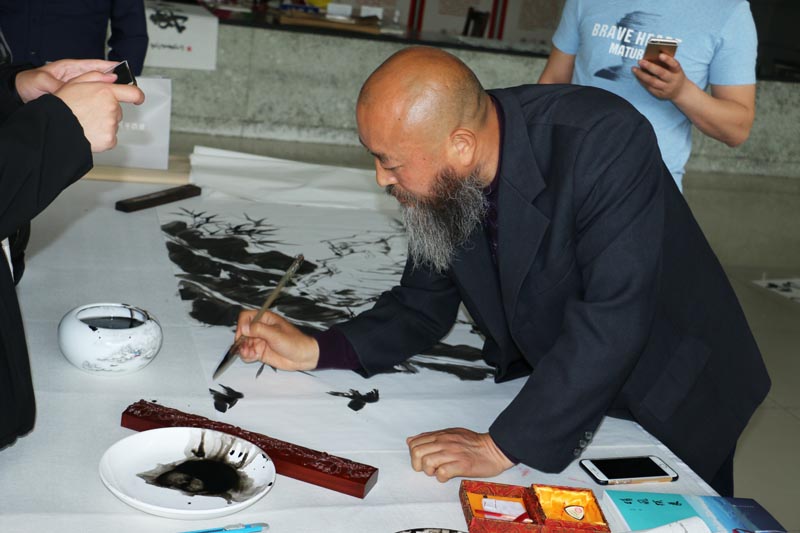 此次书画笔会是永利官网“第八届大学生读书节”活动之一。用诗词描摹天下,用笔墨书写春秋、弘扬中华传统文化的形式是一种特殊的品味书香。活动现场,翰墨飘香,丹青溢彩,书画爱好者与书画名家开展交流,气氛热烈、融洽。书画名家许能俊、“茅山小道”、景玉峰等十余名名家或挥毫写书法,或泼墨作国画,一副副作品耀然纸上,或大气磅礴、或隽永俊秀,现场获得了广大师生的一致好评。