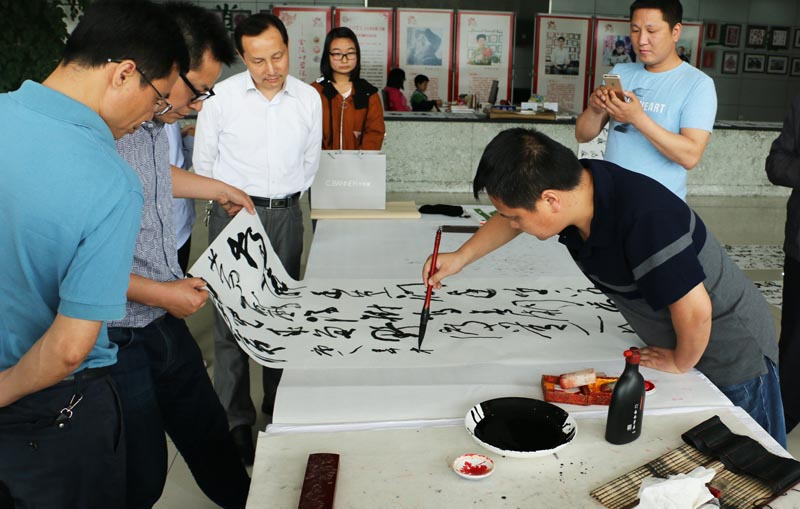 5月12日上午,由学院图书馆主办的“书香墨韵-校园书画比赛、展览暨书画爱好者笔会”现场部分在图书馆二楼大厅隆重举行。来自学院约50余名师生书画爱好者及镇江市书画名家参加笔会活动。