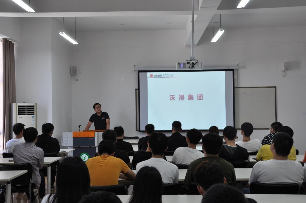 全国农机龙头企业江苏沃得集团负责人向同学们介绍了公司的情况和理念,以及对公司新成员的要求,并就毕业生典型就业经历,分享了成功的经验和心得。同时,企业负责人还与学院相关教师就学生实习就业、合作办学等进行了深入的交流。
