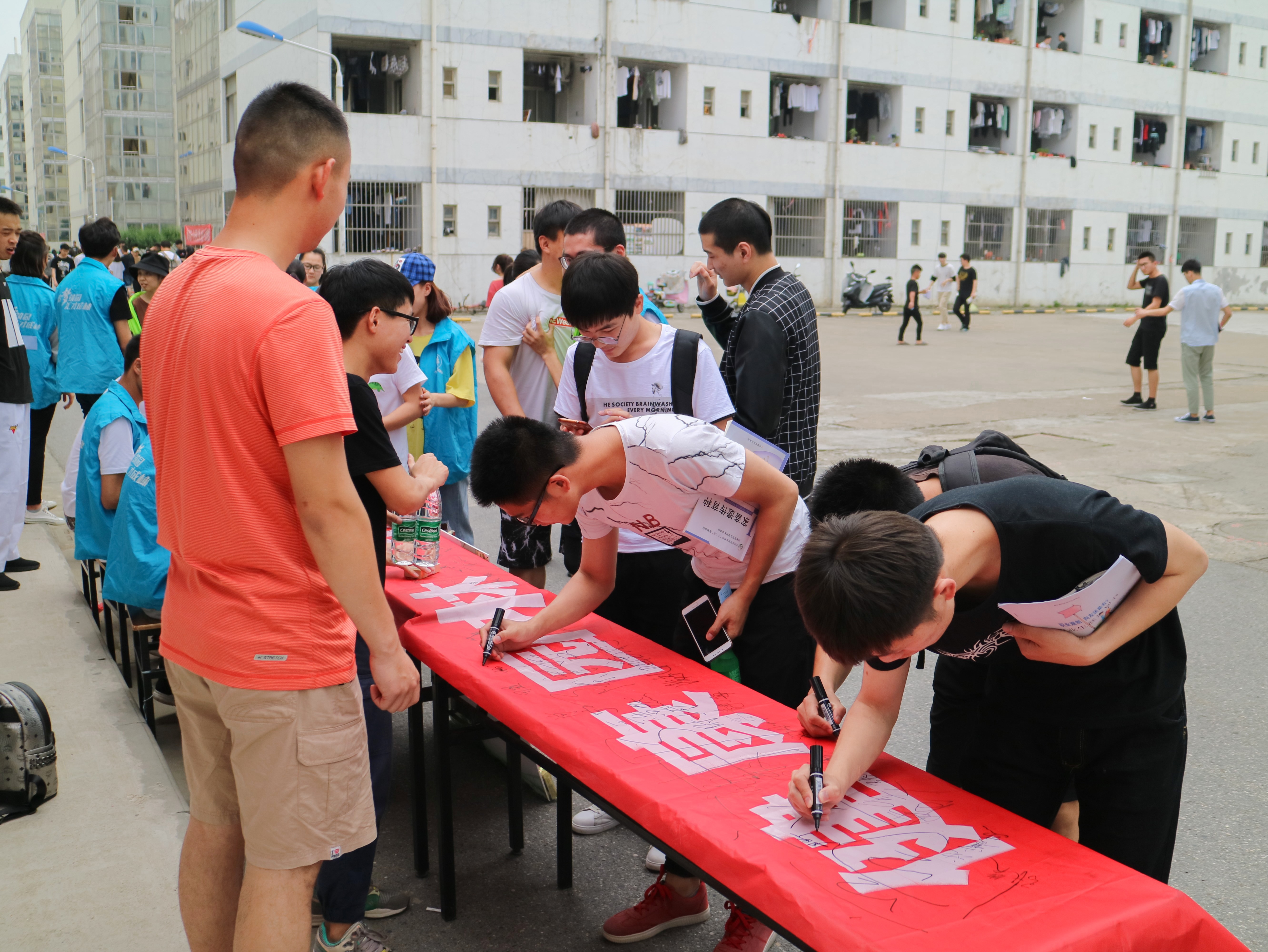 学生志愿者和疾控中心的工作人员们在食堂门口拉起横幅,并用空烟盒做成警示牌,同时发放戒烟传单,积极宣传吸烟的危害性和戒烟的重要性。同学们纷纷在“戒烟”条幅上郑重地签下自己的名字,响应“拒吸第一支烟,做不吸烟新一代”的号召。