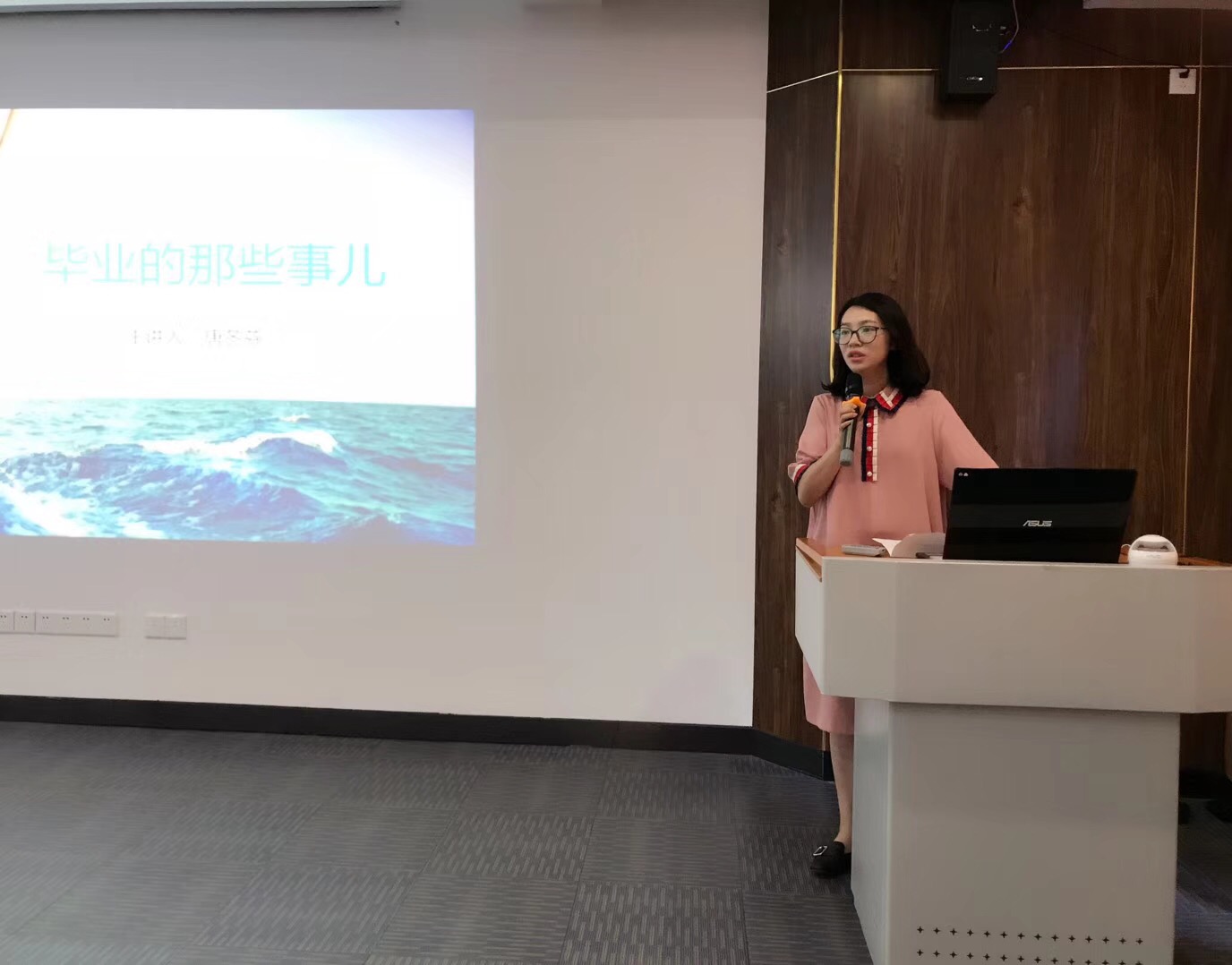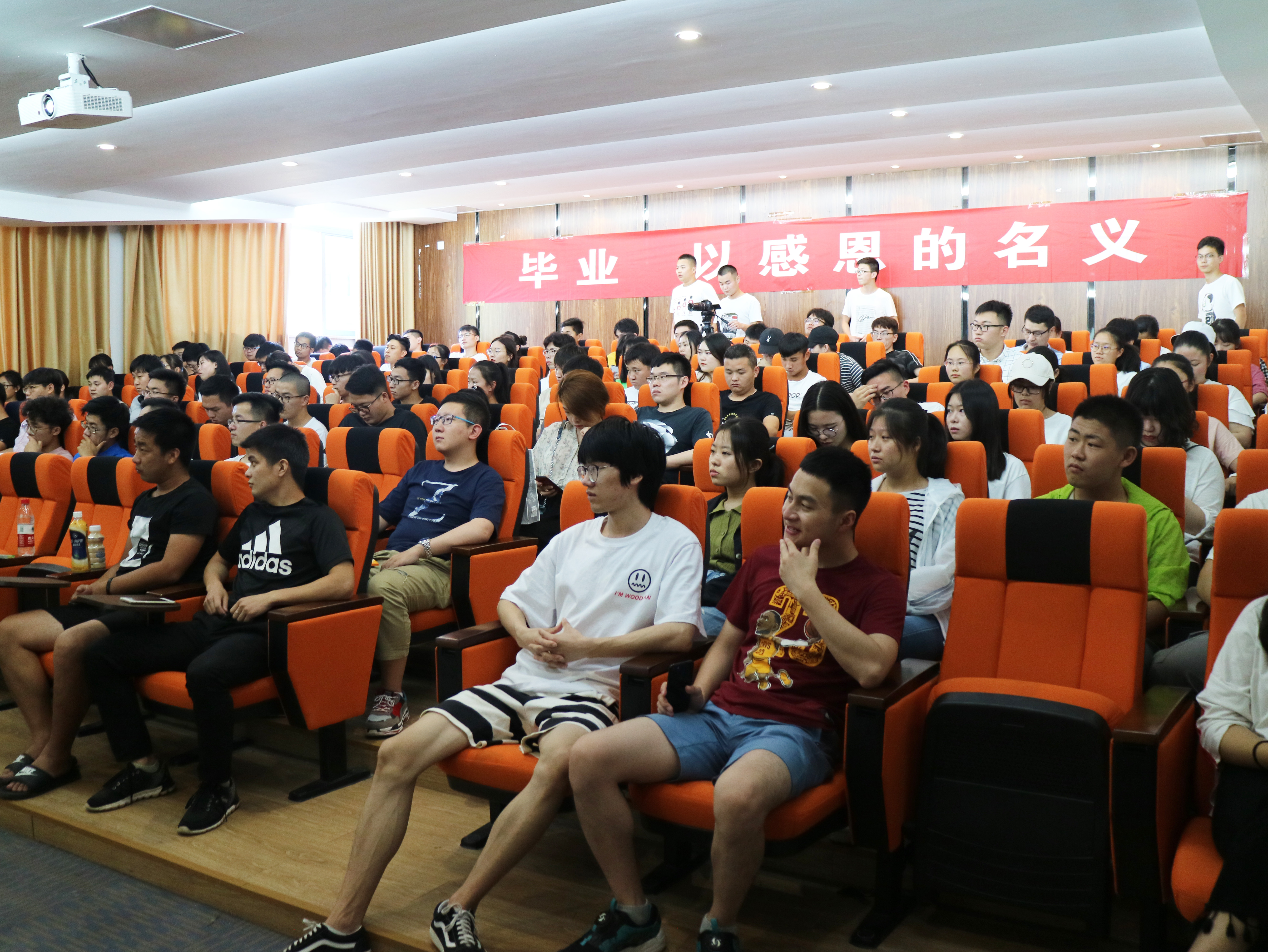 活动以“你的论文定稿了吗?毕业材料准备好了吗?踏入社会你准备好了吗?”开场。接着全场灯光熄灭,音乐响起,大屏幕上播放着大家从大一入校到大三的生活点滴,带大家进入青春的回忆里。随后,在冯翔宇同学的带领下进行“感恩宣言”:感恩父母、感恩同学、感恩老师、感恩学校,感恩生活,并号召大家十年后再次相约农林。活动最后,同学们上台以拥抱的方式感恩老师们的付出,并与老师们合影留念,在希望树上留下了对未来的自己想说的话。