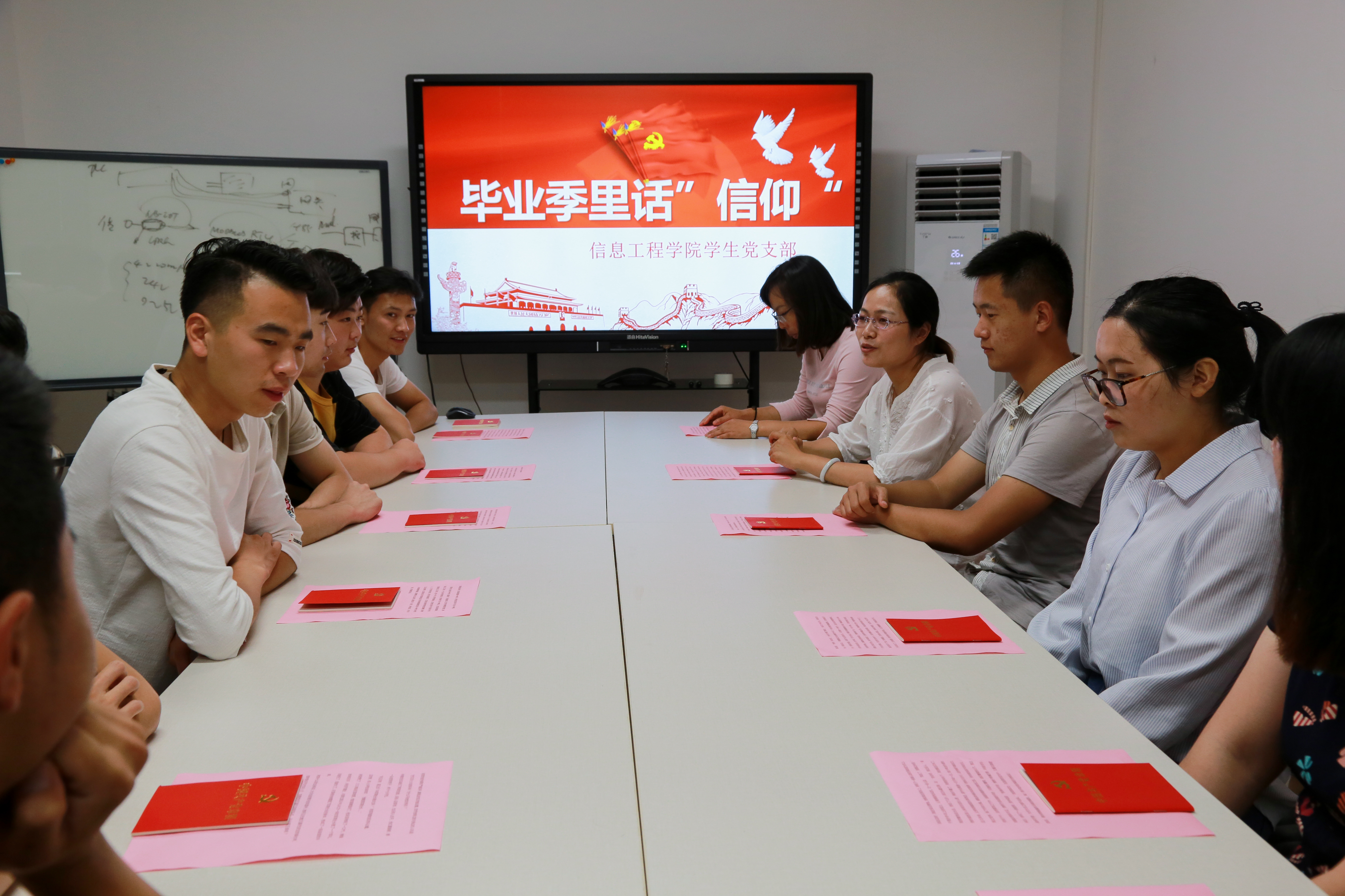 为了加强对毕业生党员思想教育,进一步增强党员意识,加强党性修养,信息工程学院学生党支部于6月12日开展了“毕业季里话信仰”毕业生党员专题教育活动。