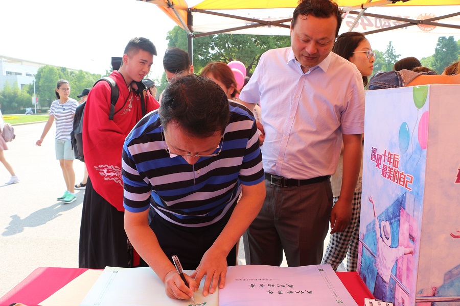 6月11日,畜牧兽医学院邀请所有班主任与毕业生,在北校区香樟树旁,为十年后的自己写上一封时空信件,并在精心准备的畜牧兽医学院2018届毕业生纪念册上签名纪念。老师们也都为毕业生们写上了毕业赠言,一起投入时空信箱,希望十年后,校友们返校时,能够重新打开这些记载校友们青春的信件,一起回味曾经的青春时光。活动现场,同学们与老师们一起合影、留念,留下了最美好的青春印记。