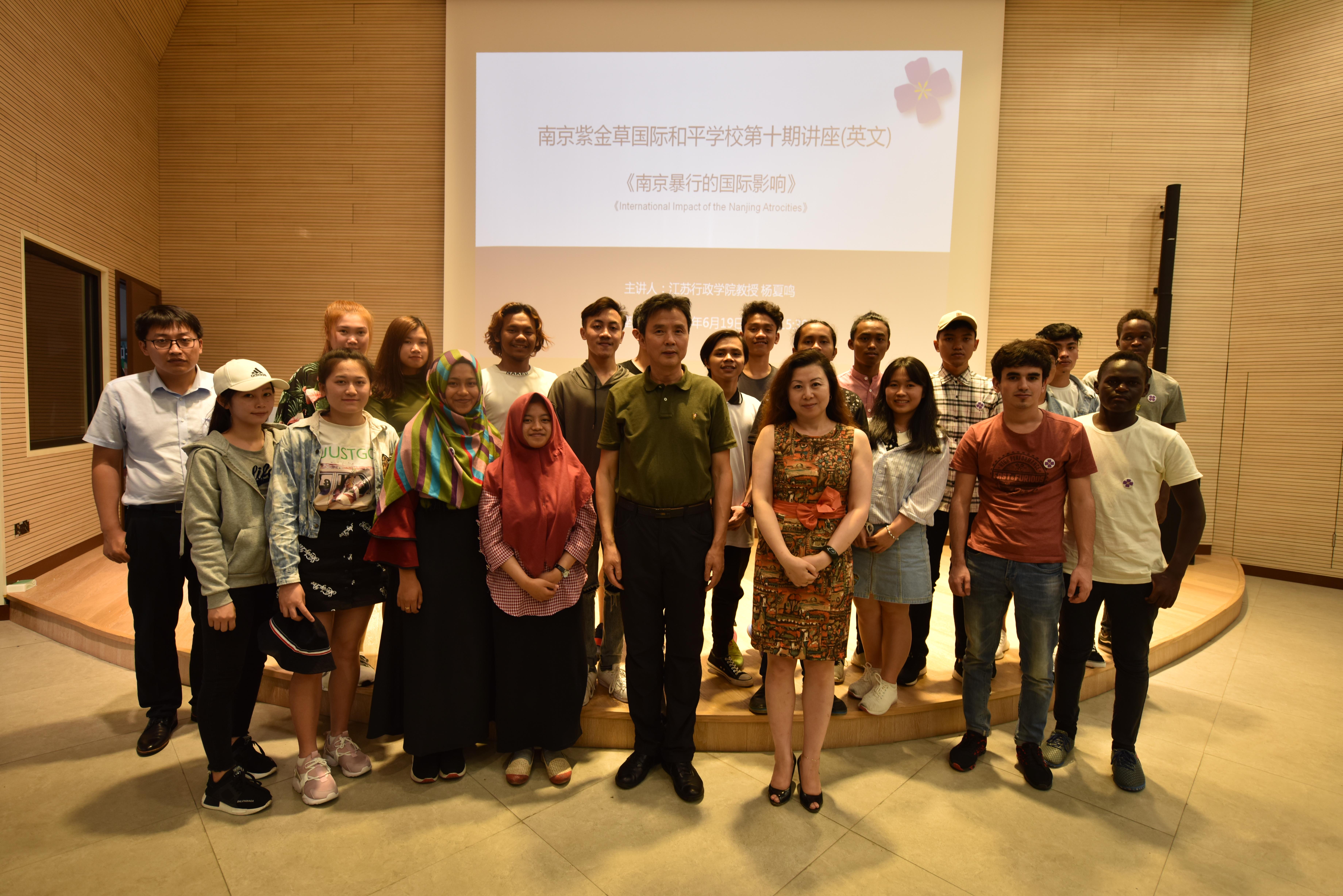 活动中,留学生们参观展览,观看了纪录片《马吉的见证》,并聆听《南京暴行的国际影响》讲座。座谈会上留学生们与江苏行政学院杨夏鸣教授和纪念馆馆长张建军分享参观学习心得,表示要将这段历史讲给更多的人听,让更多国际朋友了解到这段悲痛的历史,珍爱和平,做和平使者。