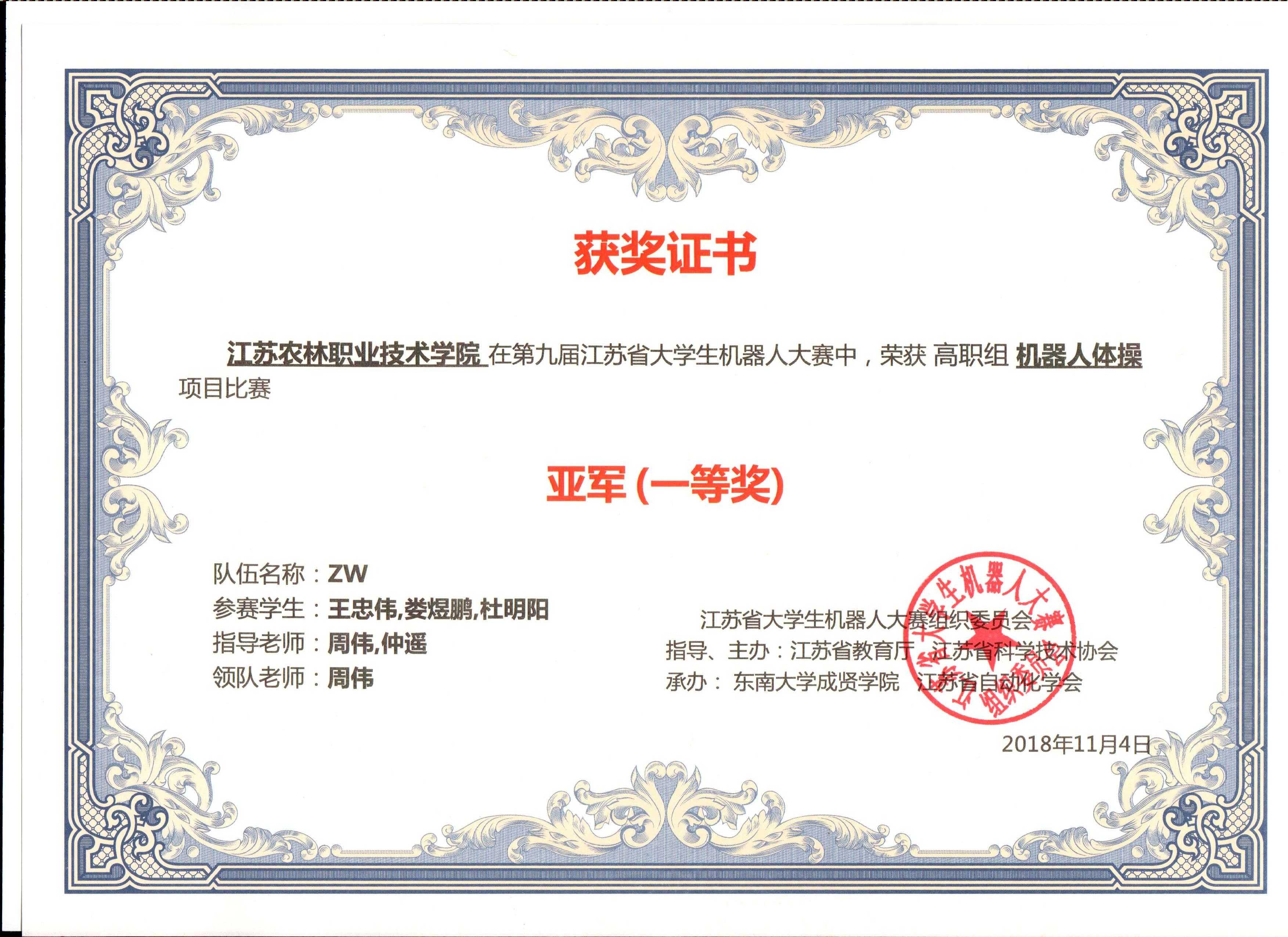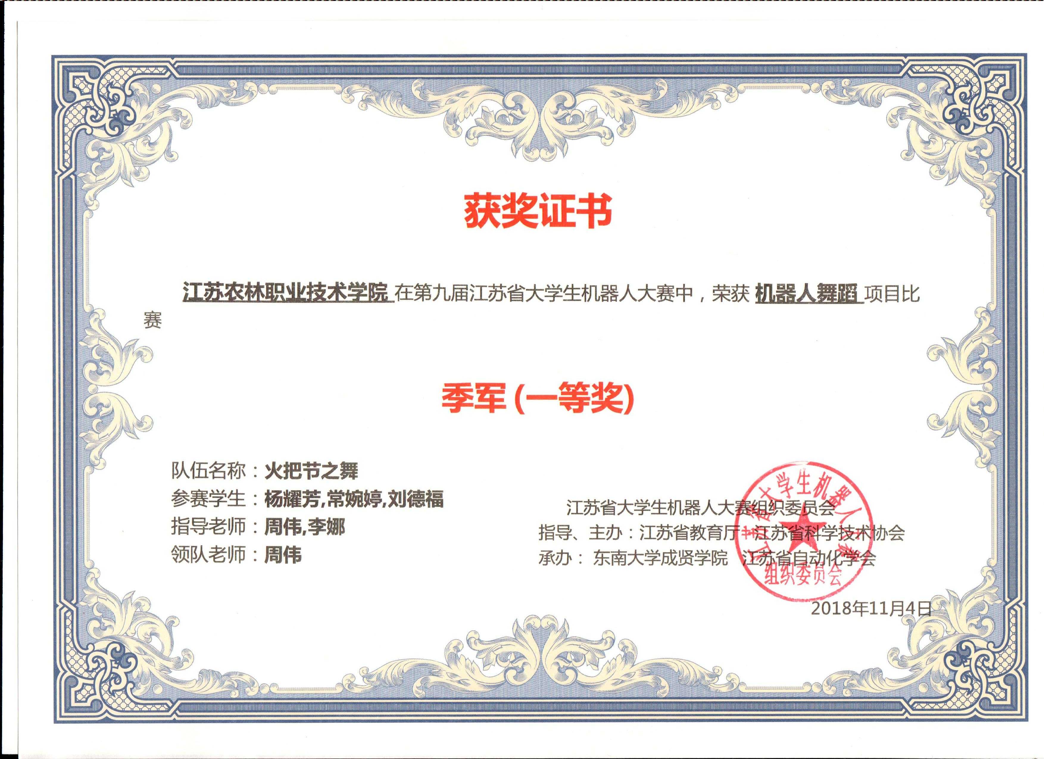 经过激烈角逐,我校信息工程学院周伟、仲瑶等教师带领的6支队伍取得了5个奖项的好成绩,其中机器人舞蹈项目荣获季军(一等奖),竞技体操项目荣获亚军(一等奖),光电搬运项目参赛队获得季军(二等奖)。