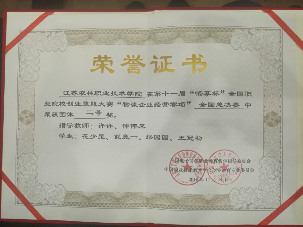 本赛项自2008年开赛以来,已经连续举办十届,现已成为物流行业新业态、新模式下各院校进行创新创业教育改革,展示创新创业教育成果,激发学生创新创业热情,培养学生的创新精神和创业技能的品牌赛事。我校物流专业学生表现突出,通过层层考验,经过激烈竞争,最终获得团体二等奖的佳绩!