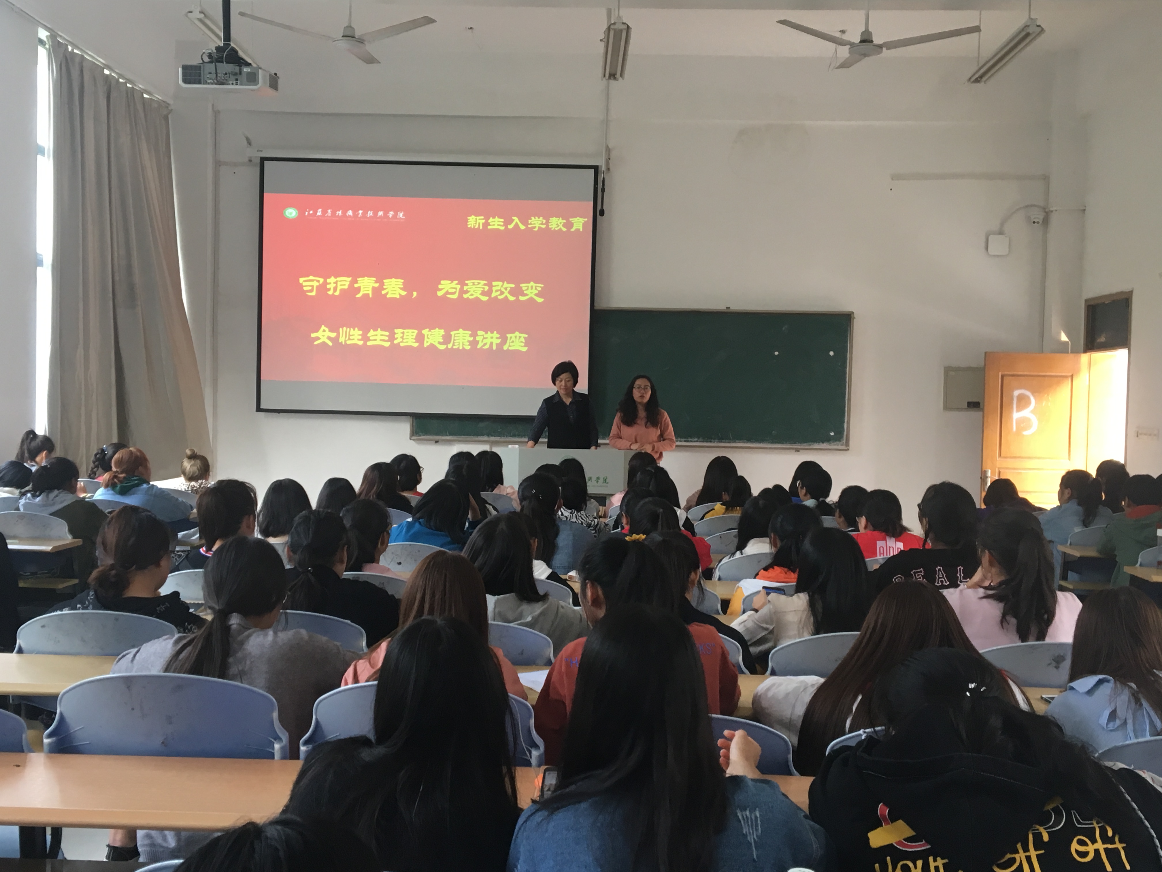 10月17日,在本部研发楼报告厅、茅山校区分别开展了新生入学教育系列活动之“守护青春,为爱改变”关爱女性健康专场讲座。句容市妇幼保健医院于蓉主任受邀主讲。讲座中于主任结合生活实例与理论知识,详细地讲授了女性生理保健、正确的避孕方式、流产的危害等医学健康知识,并与同学们进行了良好的互动。