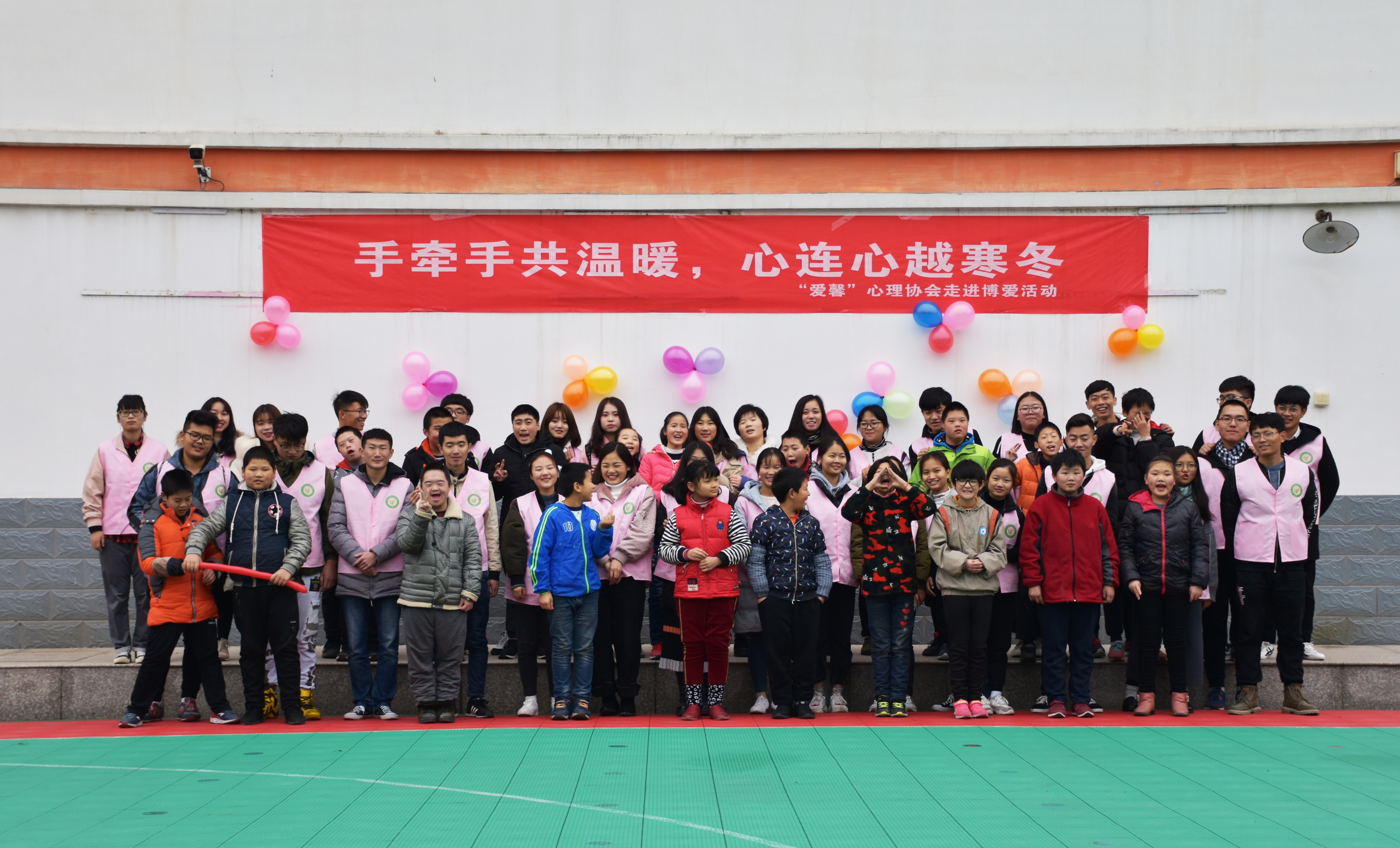 为了关爱特殊儿童,培养学生感恩心态,“爱馨”心理协会一年一度的“走进博爱”活动于12月5日下午在句容市博爱学校操场举行。今年的活动主题是“手牵手共温暖,心连心越寒冬”,“爱馨”心理协会30名成员和博爱学校20名小朋友共同完成了此次活动。