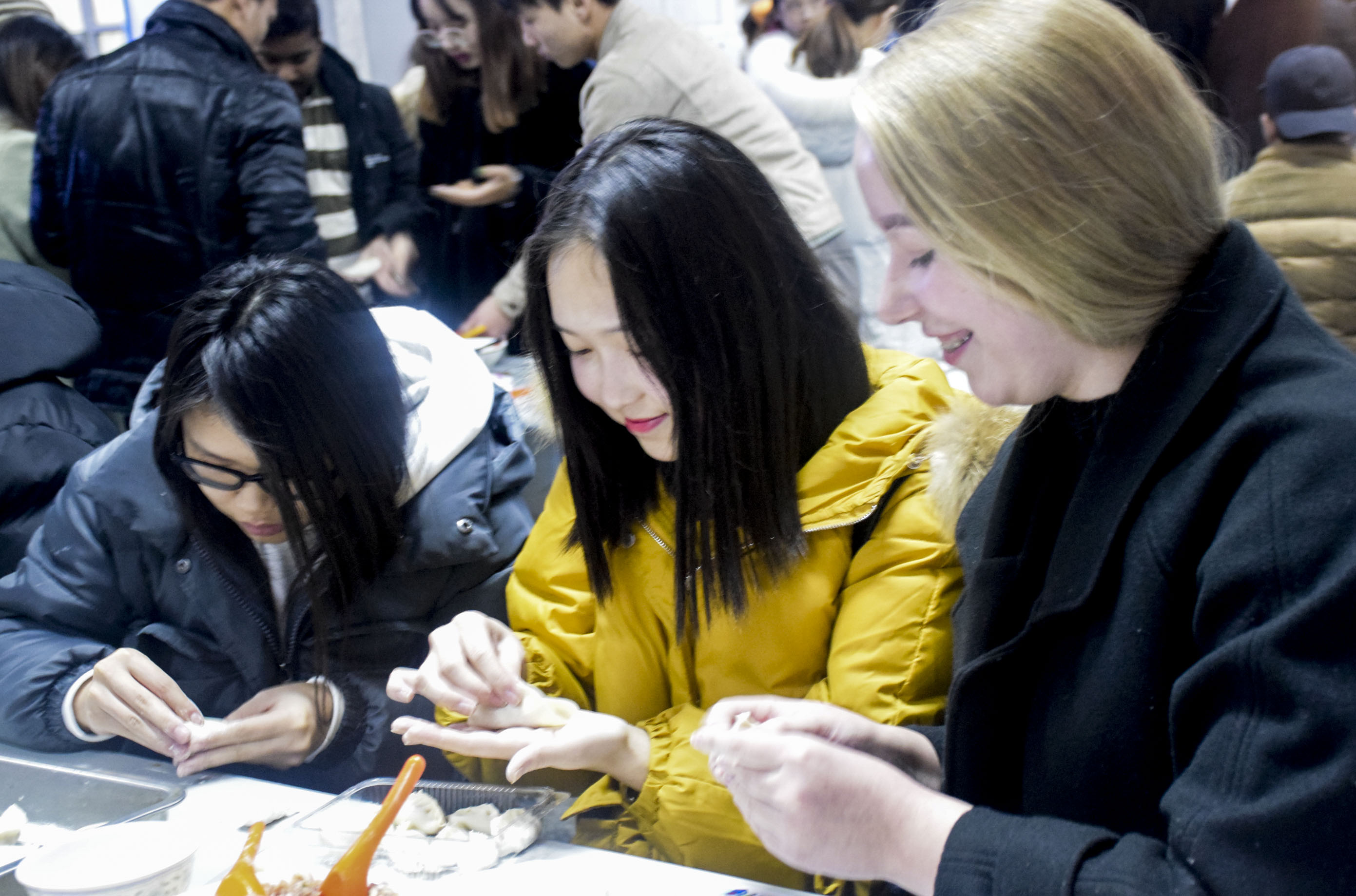 为弘扬中华传统文化,共筑国际友谊,12月19日下午,永利官网国际交流合作中心和文之源社团共同组织了“温情冬日,快乐冬至”包饺子活动。17文秘全体同学和40多名留学生共同参与了此次活动。