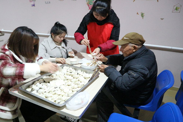 志愿者们带着齐全的食材,亲手制作饺子馅,与老人们共同包饺子,活动现场其乐融融。热腾腾的饺子,浓缩了每位志愿者的爱心,天气虽然寒冷,但每一位老人的脸上洋溢着幸福温暖的笑容。志愿者们不仅体验到了劳动的快乐,也给老人带去了温暖和幸福。