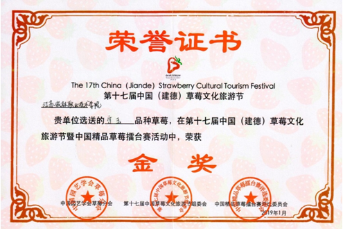 永利官网草莓综合示范基地生产的红颜、宁玉等两个草莓品种参加全国精品草莓擂台赛,在来自全国65个品种、700余份样品中斩获两个奖项,其中选送的宁玉品种在精品草莓擂台赛活动中荣获金奖,红颜获得银奖。