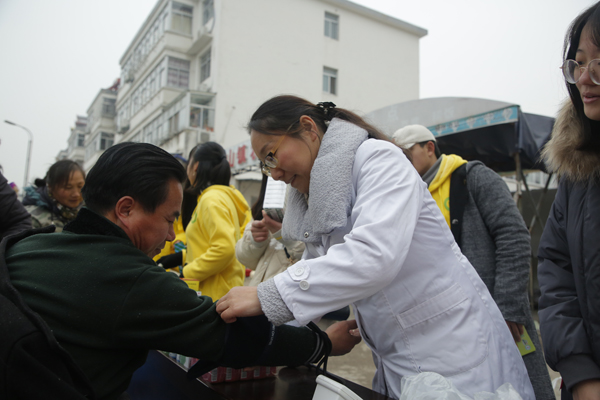 寒冬送暖,腊月传情。1月10日,茅山校区50名志愿者来到茅山镇城盖村为村民免费义诊,免费赠药,赠春联。