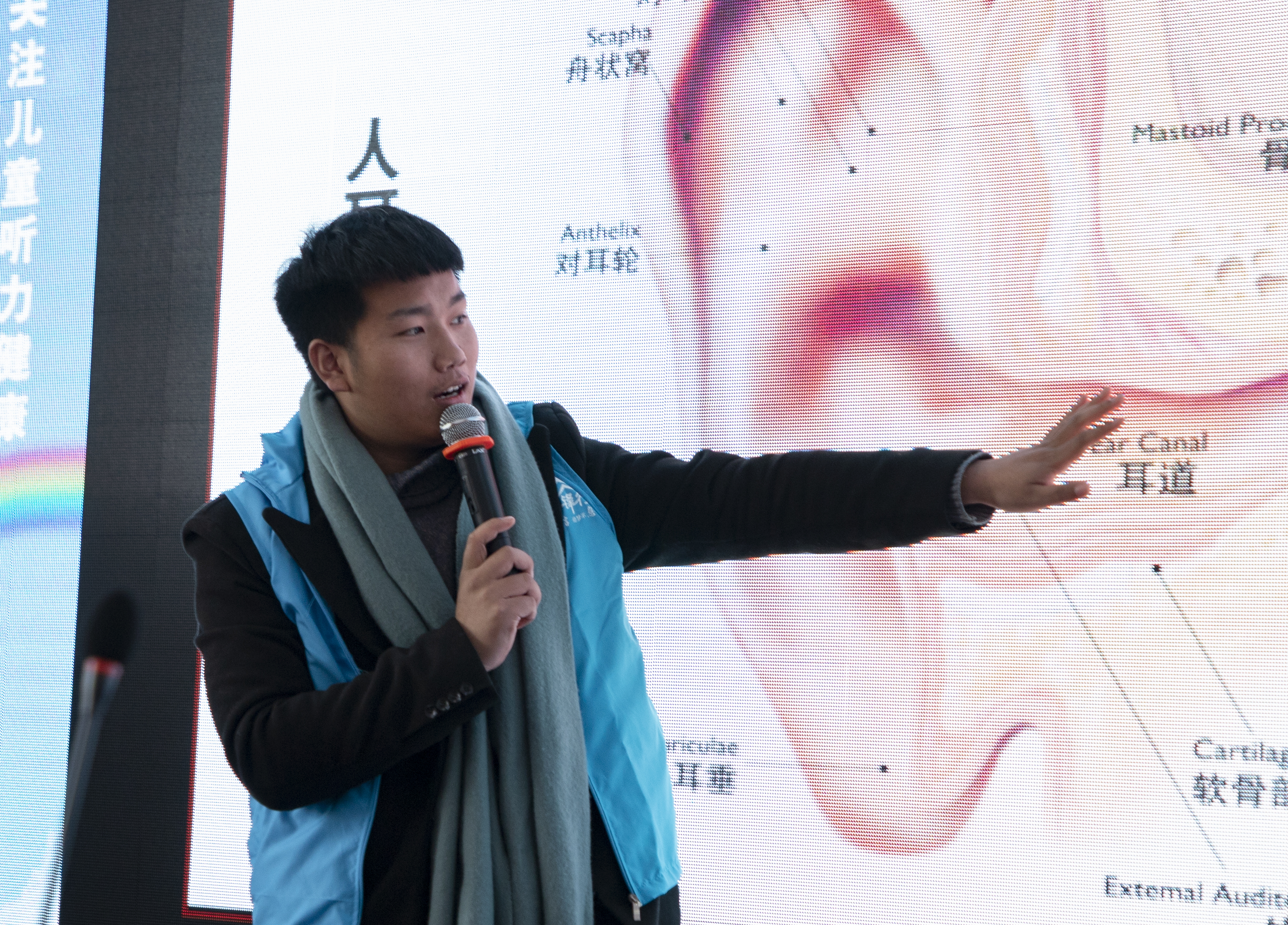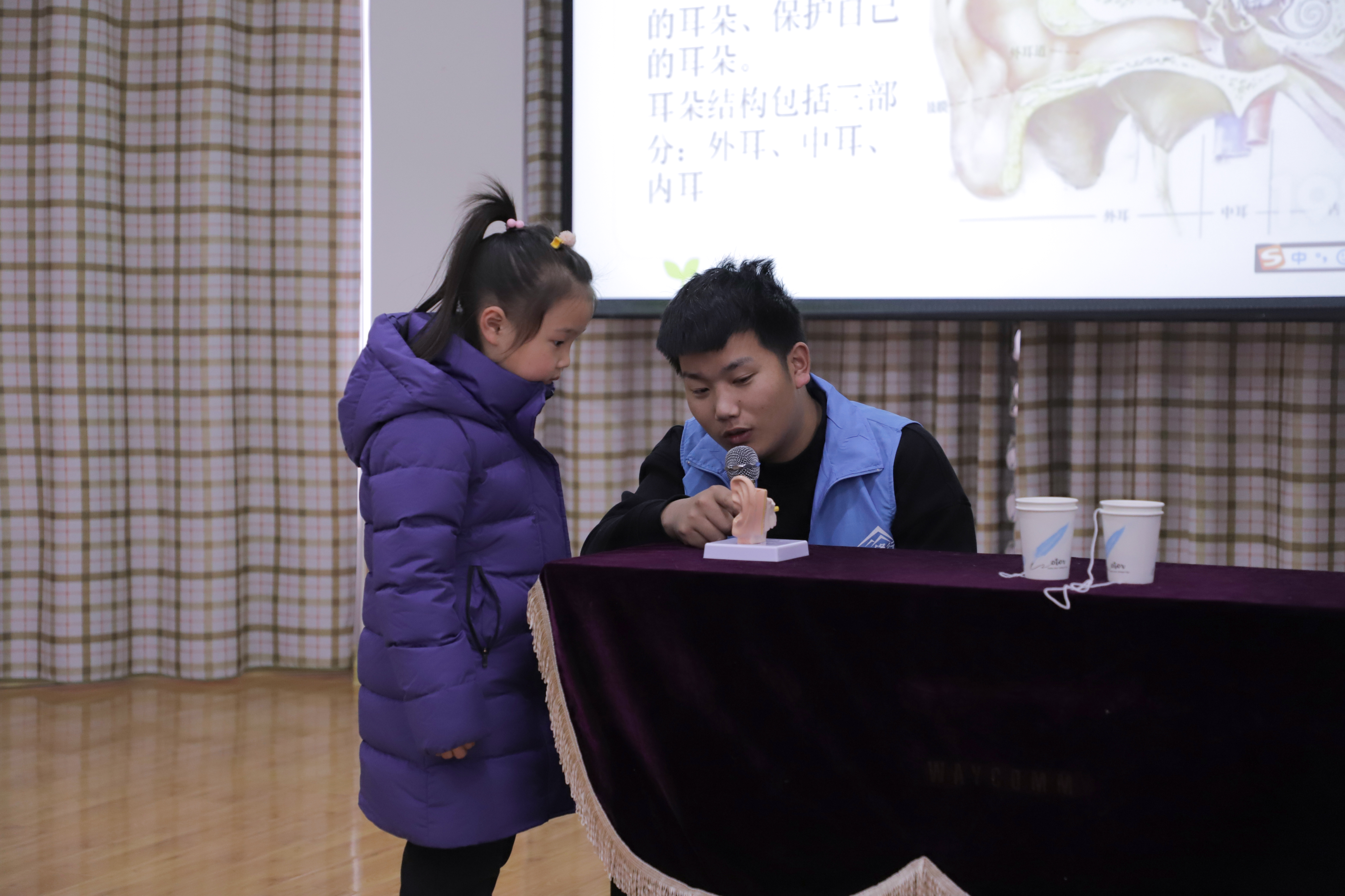 活动中,志愿者们首先通过图片和耳朵构造模具让小朋友们认识耳朵的结构和主要功能。随后,志愿者通过听力游戏让小朋友们亲身体验不同声音强度大小对身体带来的感受的不同,引导小朋友们认识出噪音对听力的伤害并寻求保护听力的方法。活动最后孩子们认真地和志愿者一起来做耳朵保健操,掌握护耳的小妙招。