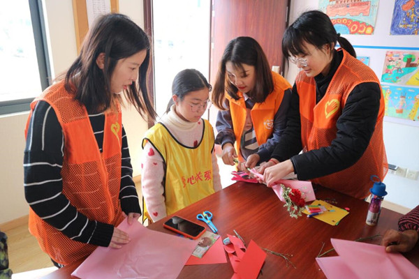 志愿者通过健康知识讲座,给小朋友们普及了春季疾病预防相关知识,帮助孩子们一起制作贺卡送给在外务工的父母,一张张精美的卡片蕴含着孩子对父母深深的思念和爱意。最后,志愿者们为留守儿童开展了团体辅导,让孩子们在活动中体会到了爱和团队互助精神,变得更加自信。