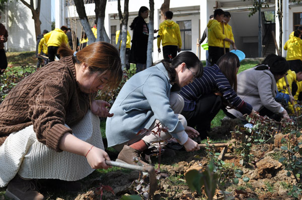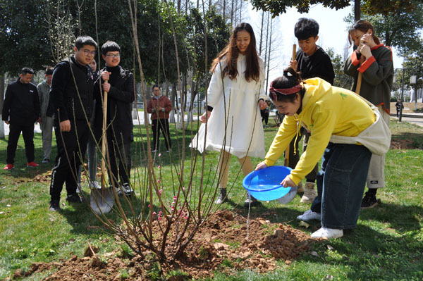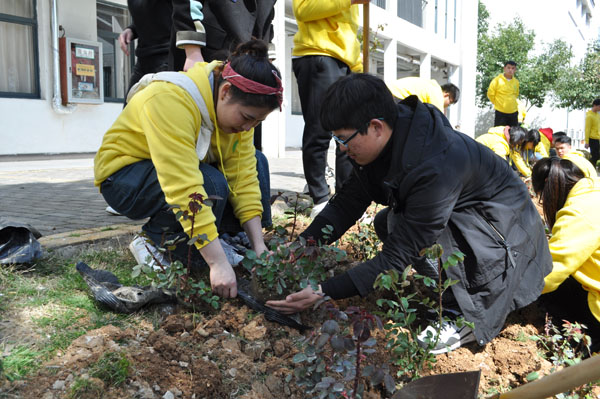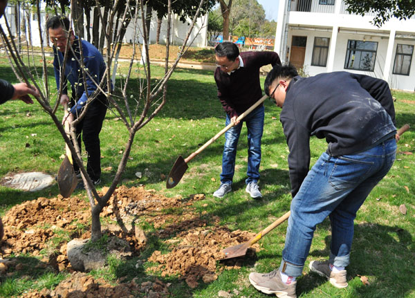春风送暖、草长莺飞。为了增强校区师生绿化环境、爱护树木的意识,茅山校区分团委于3月12日在行政楼旁的草坪上开展了 “建绿色校园 筑青春梦想”植树节活动,校区50名志愿者,全体党员教师参加了此次活动。 活动过程中,各小组分工有序,挖树坑、搬树苗、浇水,每位同学都积极参与、互相帮助,在大家共同努力下,一片小小的绿化区初见雏形。此次活动不仅让同学们将绿色环保意识落实到实践中,也为建设绿色美丽校园播下了一批希望的种子。
