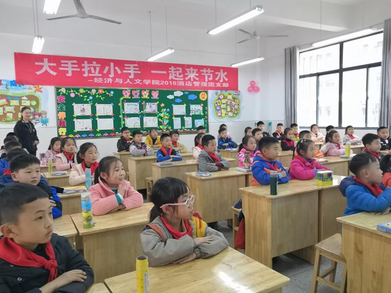 3月21日,经济与人文学院18酒店管理团支部走进句容市崇明小学文昌校区开展2019年“3.22世界水日”主题宣传活动。