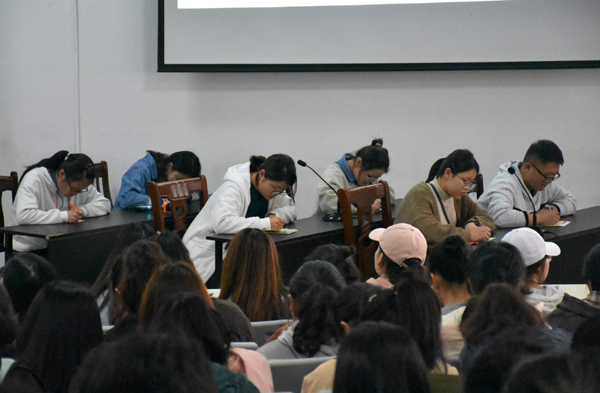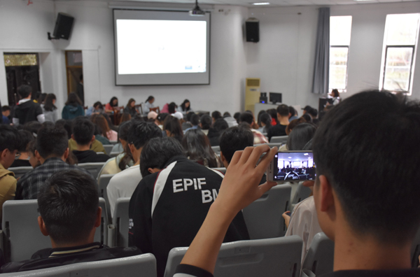 本次比赛分为团体赛和个人赛。赛场上,选手们聚精会神,细致思考,聆听着主持人所提供的每一个信息,比赛氛围紧张又刺激,观众们也自备纸笔,认真听写,不时讨论。最终傅瑜、黄婷、黄晴、吉胡、许佳琦、韩笑六位同学的组合获得了团体赛第一名,个人赛第一名由许佳琦同学斩获。