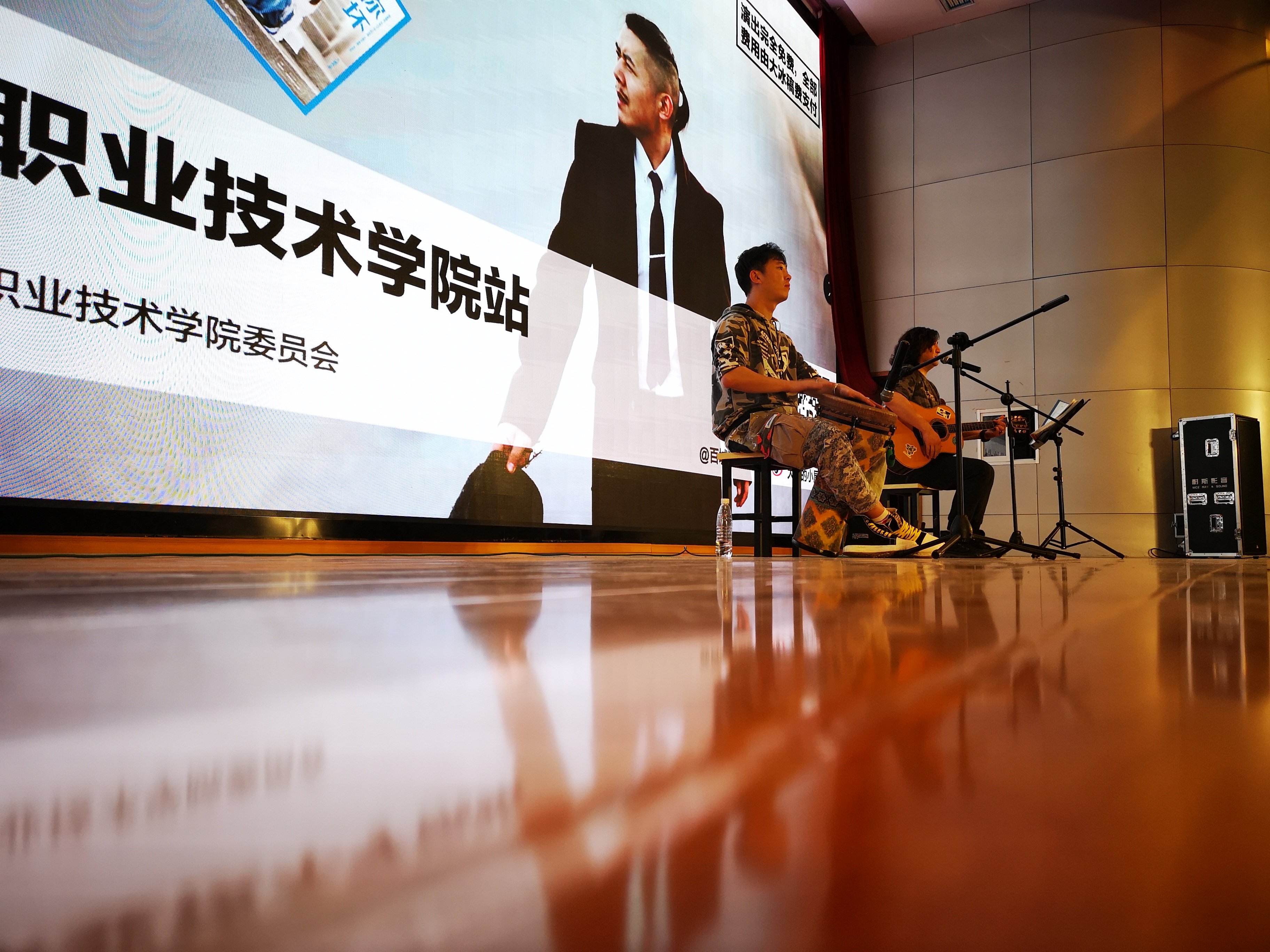 音乐会上,大冰小屋民谣歌手大鑫子、梵高先生为现场同学演绎了好听的民谣,并和大家分享了民谣背后的故事。一首首动听的歌曲,一次次亲切的互动,引来现场同学热烈的掌声和激情的欢呼。