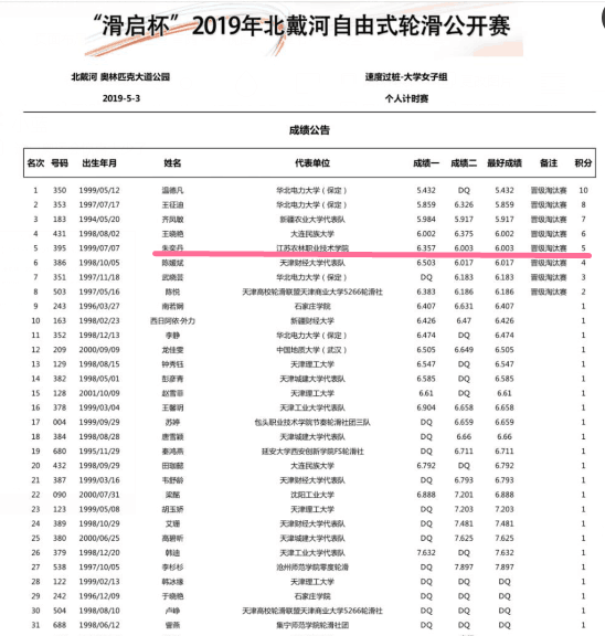 5月1日至4日,在中国轮滑协会主办的北戴河2019国际轮滑节暨2019“滑启杯”全国自由式轮滑公开赛中,由体育部卢丹老师带队,轮滑社团优秀代表17财务管理(单)班朱奕丹同学参加本次比赛。