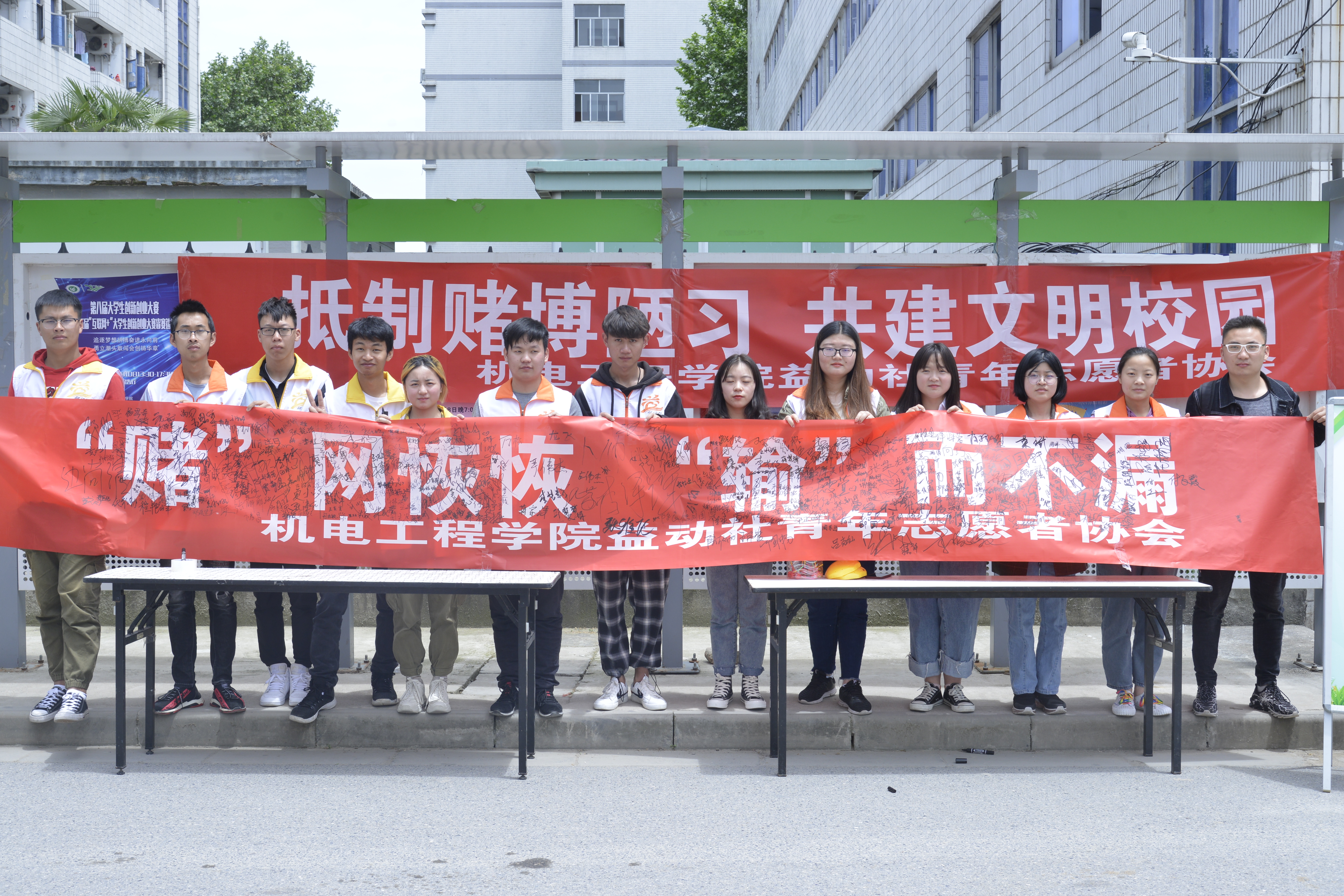 机电工程学院通过现场咨询、组织发放禁赌倡议书、校园赌博危害案例展板展示等向广大师生宣传赌博的危害,号召大家知法守法、抵制赌博陋习,共建文明校园。
