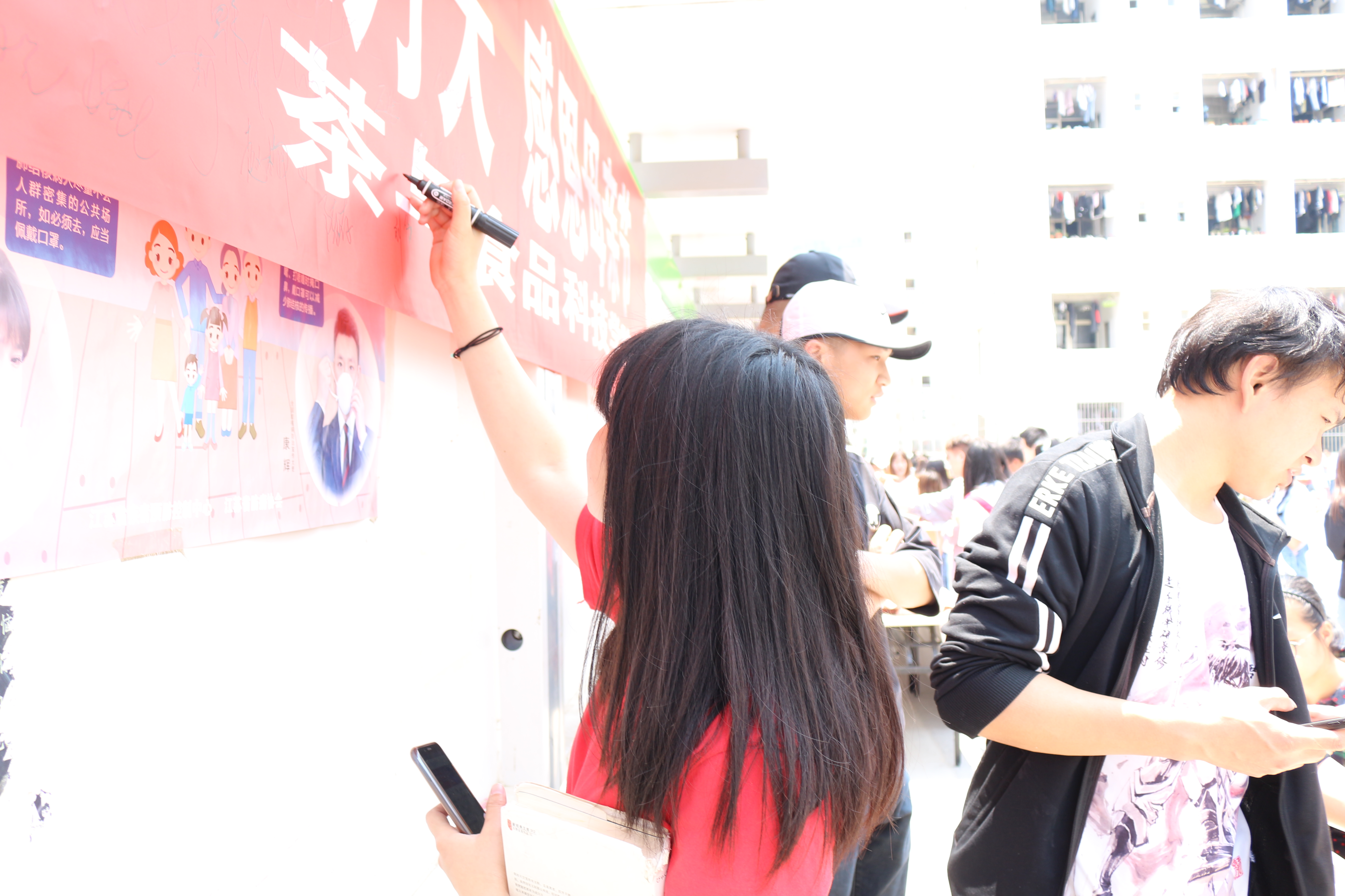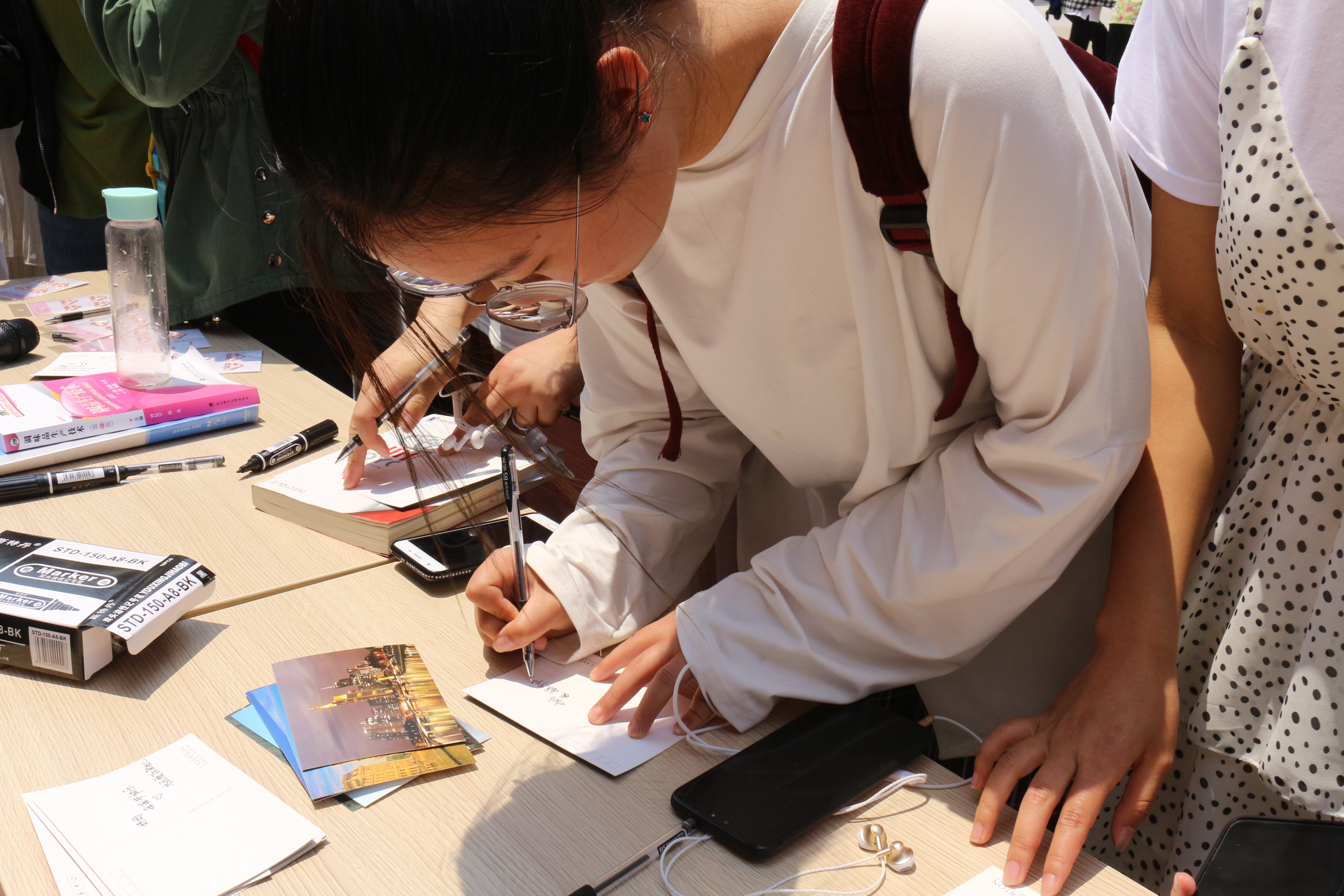 同学们以三行诗形式在明信片上书写着对妈妈的想念,有的拍照之后发给母亲看,有的通过视频读给母亲听,有的直接编辑短信发送给母亲,用实际行动表达对远方母亲的爱意,志愿者们将明信片收好后帮同学邮寄。志愿者们还为学院女教职工献上了一束束准备好的康乃馨鲜花,并致以节日最真挚的问候。最后,同学们在“浓情五月 感恩母亲”条幅上签名,活动圆满落幕。