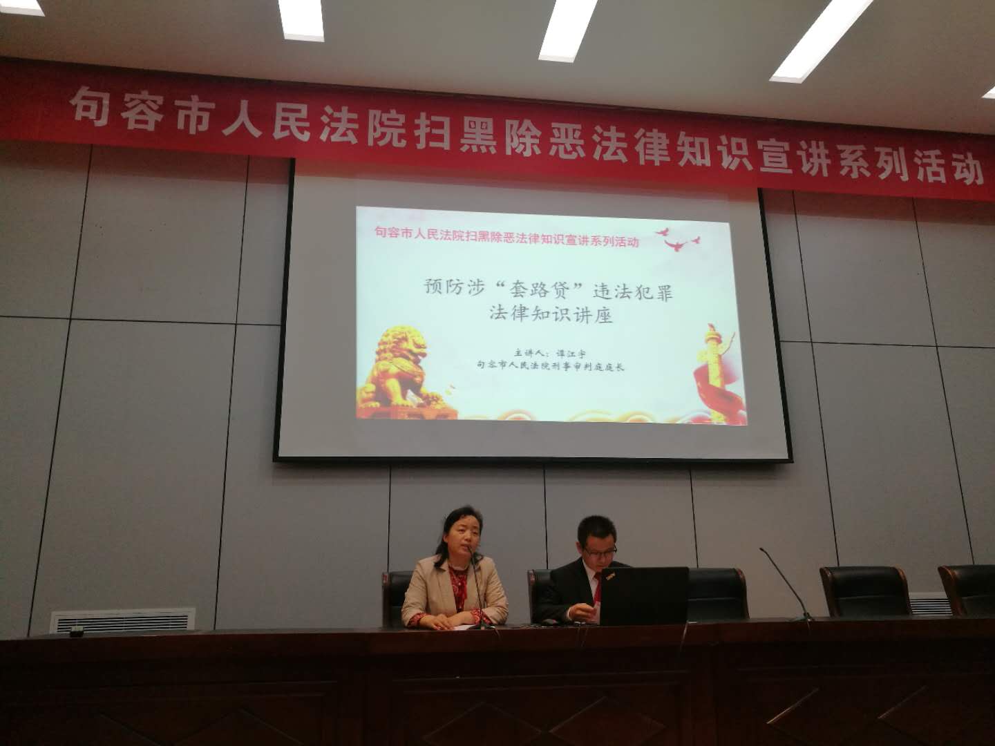 为加强扫黑除恶专项斗争宣传力度,防范黑恶势力渗入校园,营造和谐、安全的校园环境,5月15日下午,马克思主义学院邀请句容市人民法院谭江宇庭长来我校为大学生做预防涉“套路贷”违法犯罪活动法律知识讲座。