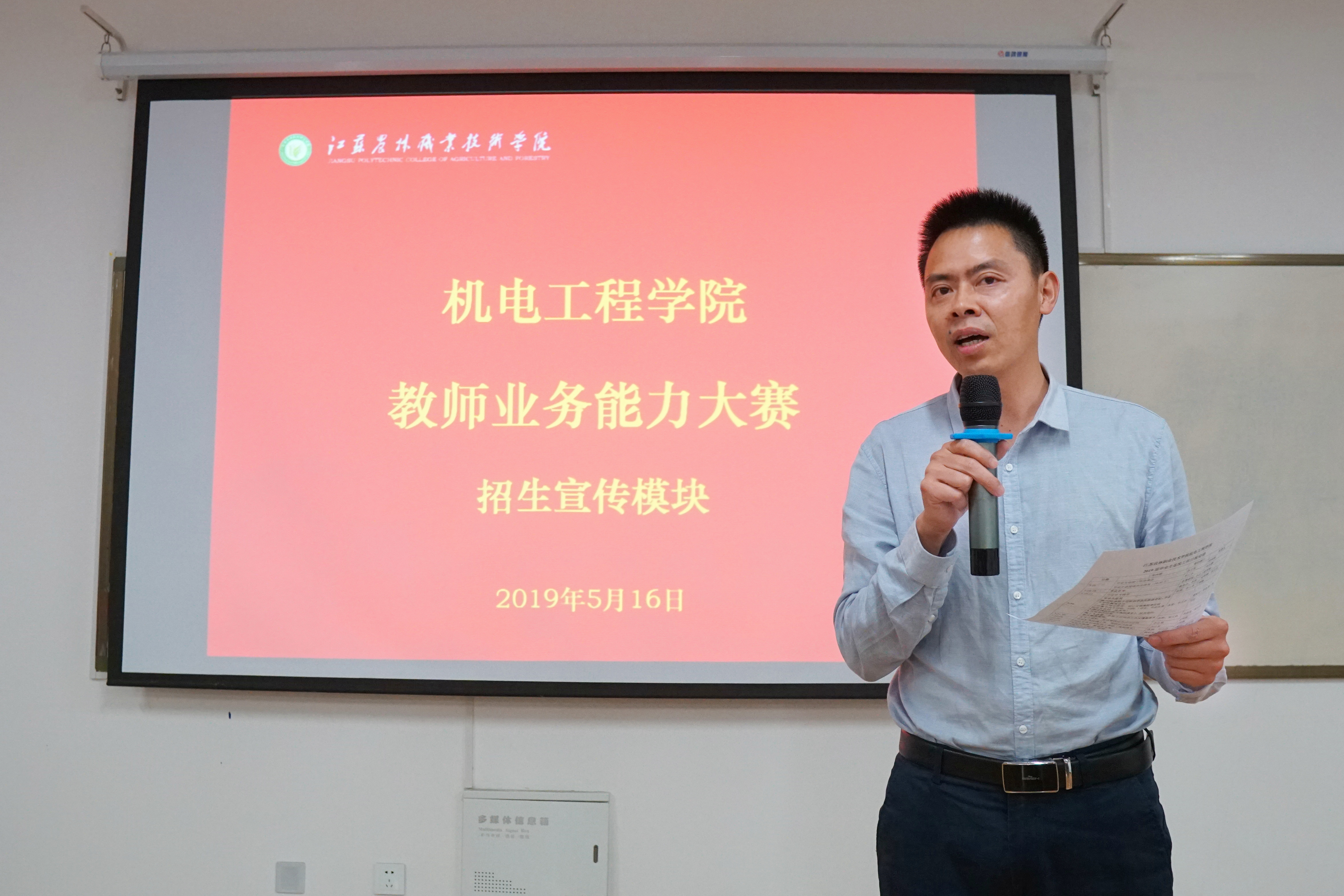 机电工程学院于2019年5月16日晚,在工科楼报告厅举办了第一届教师业务能力(招生宣传模块)大赛。机电工程学院全体教师和学生会学生干部参加了本次活动。