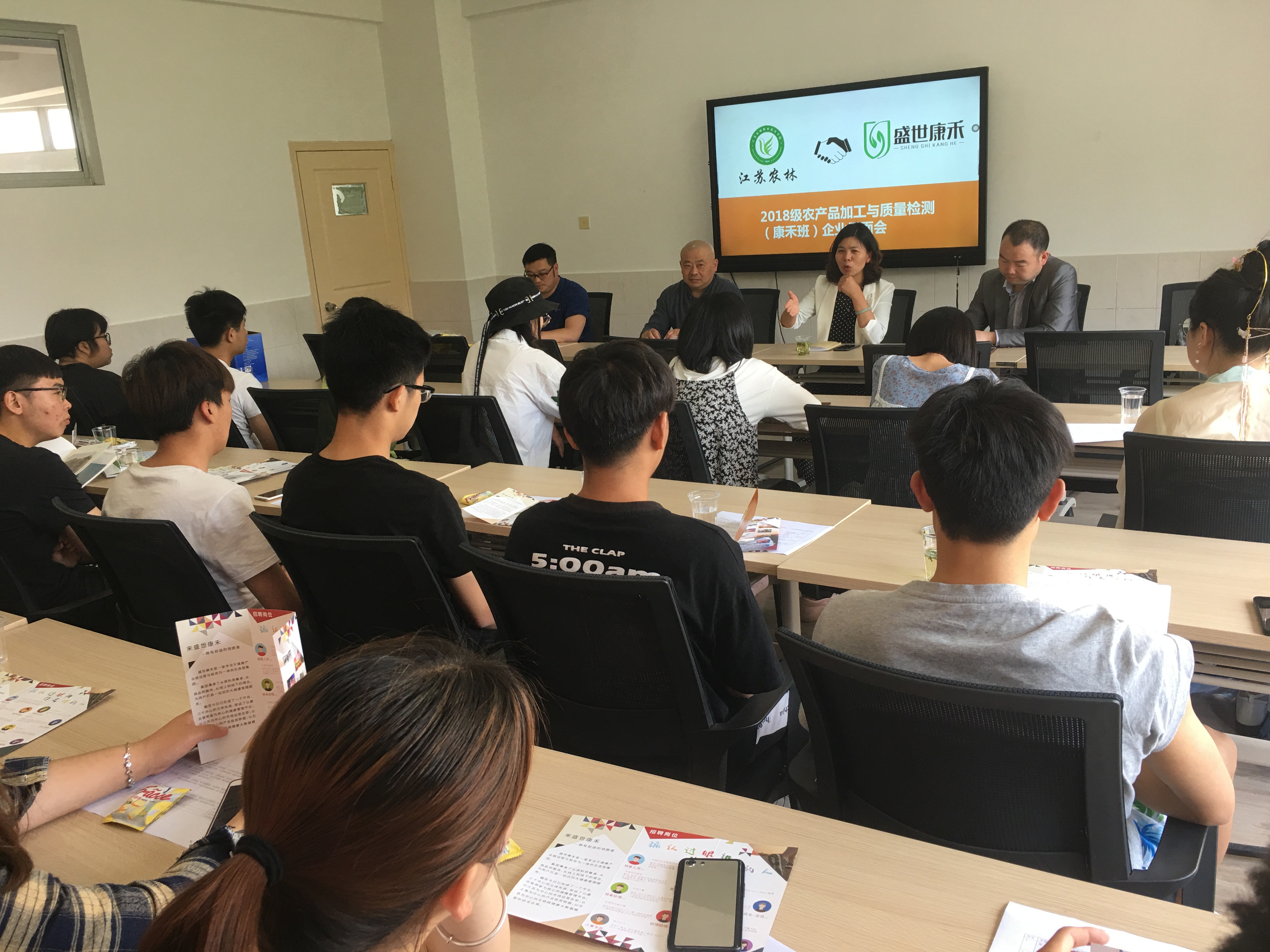5月22日下午,茶与食品科技学院邀请江苏盛世康禾陆路副总经理前来与学徒制班18级农产品加工与质量检测班召开见面会。