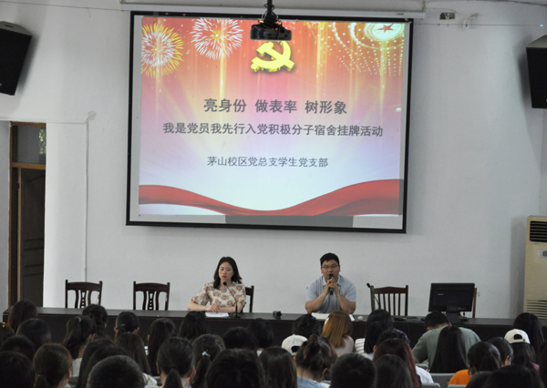 5月22日下午,茅山校区在报告厅开展了“大学生文明行为养成教育暨入党积极分子示范宿舍挂牌启动仪式”活动。茅山校区各班班长、团支书、宣传委员、入党积极分子、各班辅导员参加了此次活动。