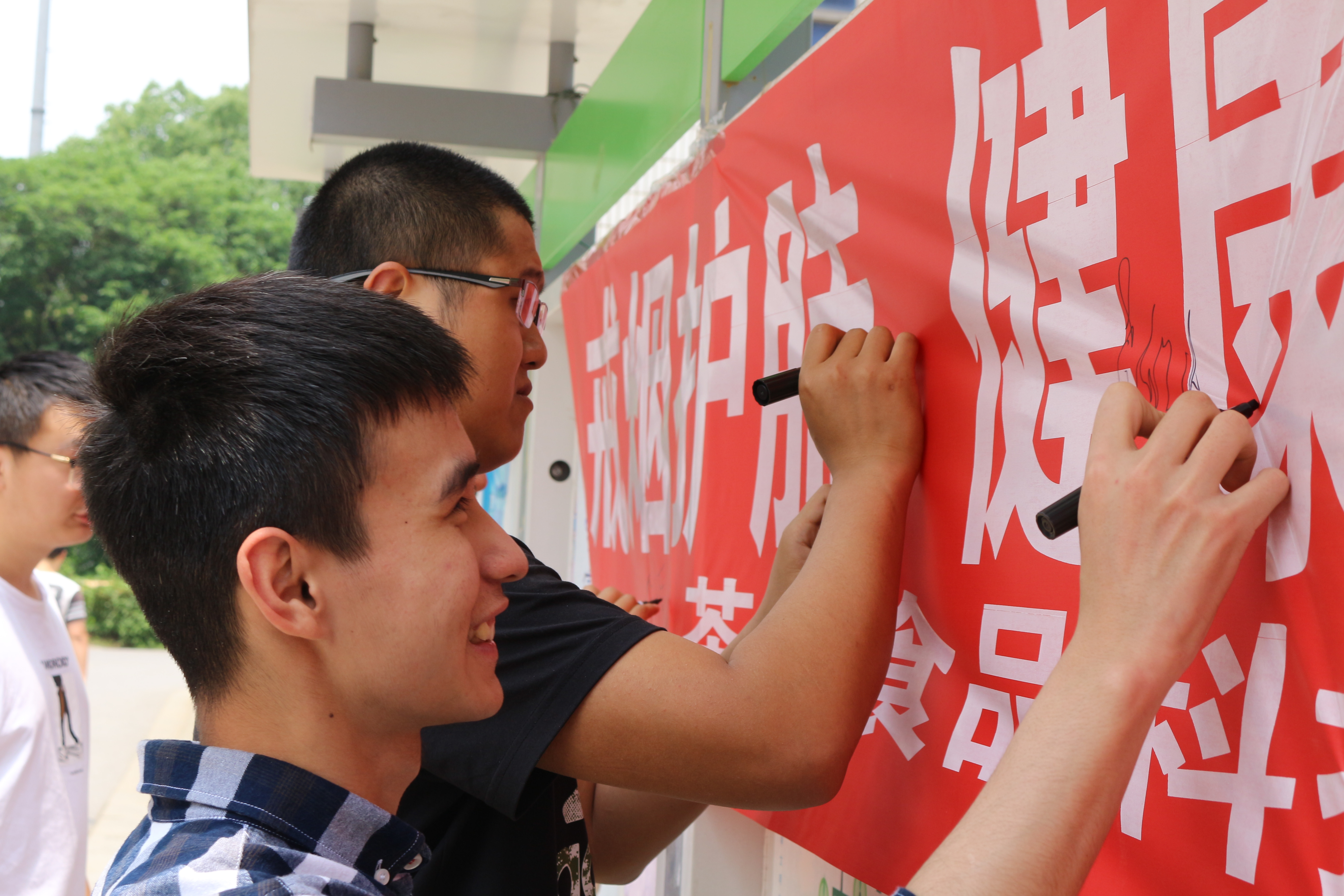 5月31日中午,茶与食品科技学院在食堂门口开展“戒烟护肺 健康呼吸”世界无烟日活动。
