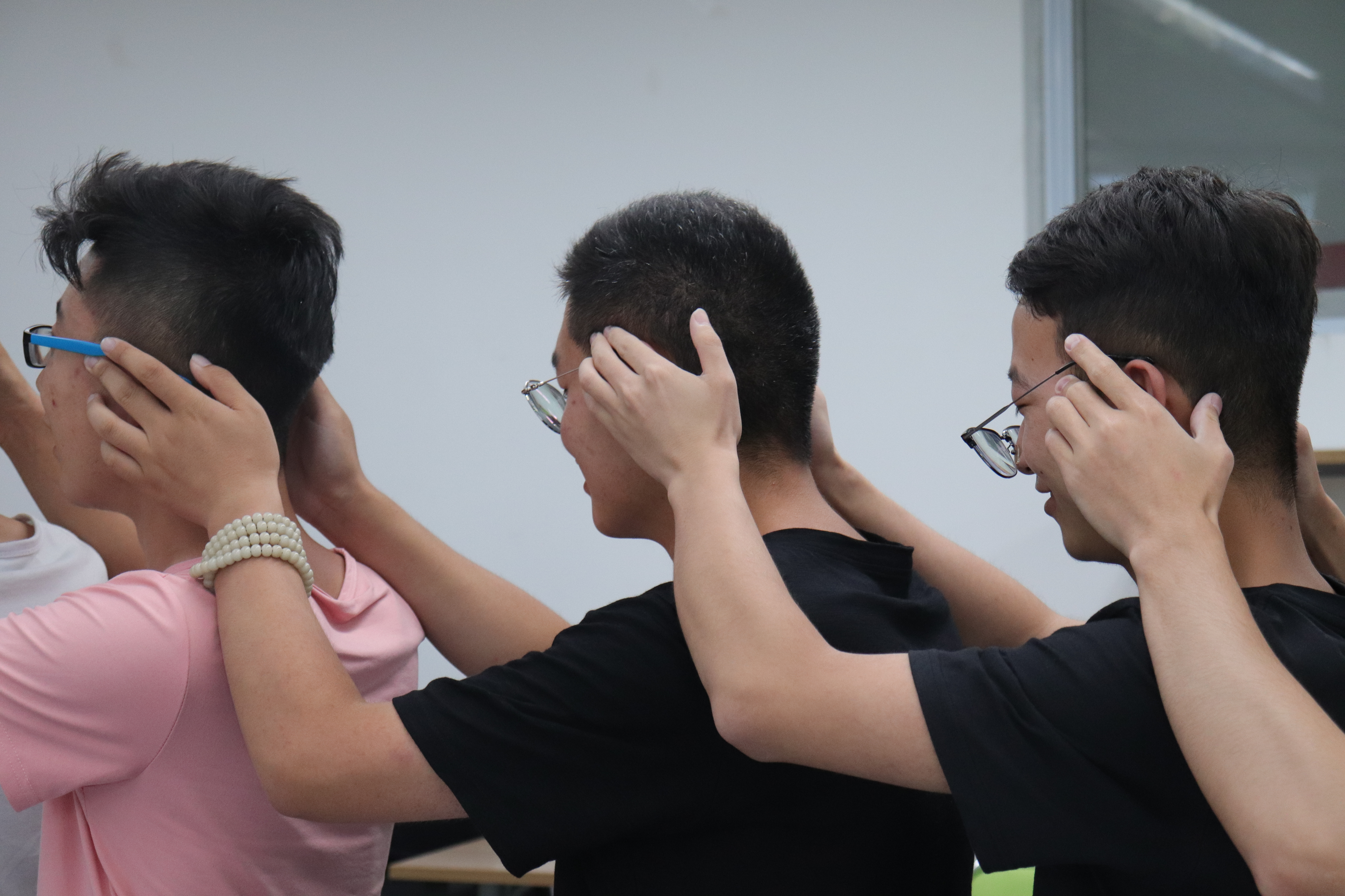 活动共有“轻柔体操”“松鼠松树”“随风摆柳”“情绪大法官”“压力爆爆爆”等五个游戏环节。通过“轻柔体操”让同学们在轻松欢快的氛围中放松下来,快速融入活动。在随后的活动环节中,通过肢体接触与语言交流的方式,团队成员之间建立了亲密的关系,愉快的交流和氛围让他们备感舒适。同学们在活动中大家释放了自己的压力,也学会在以后的生活中如何处理心理压力。