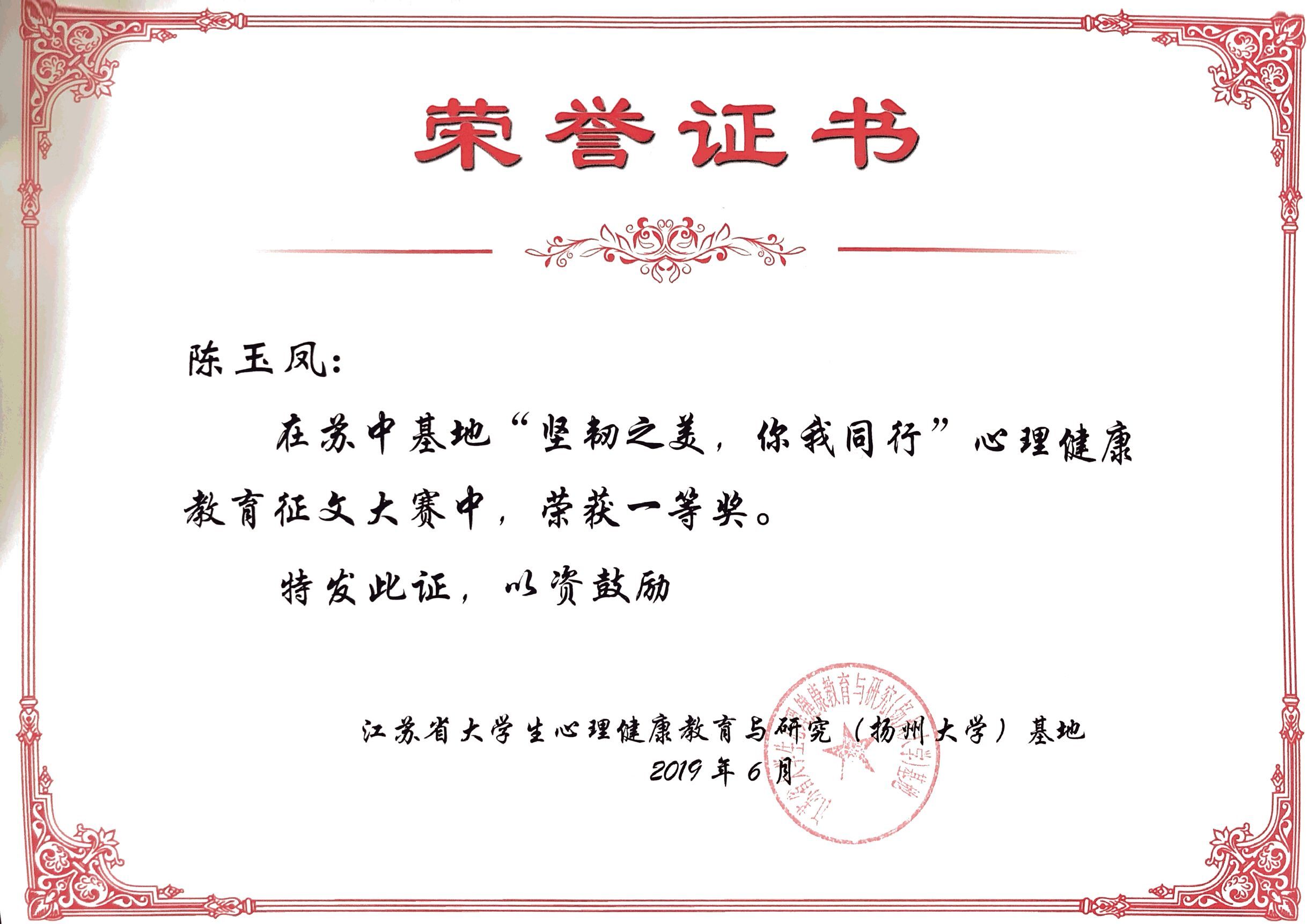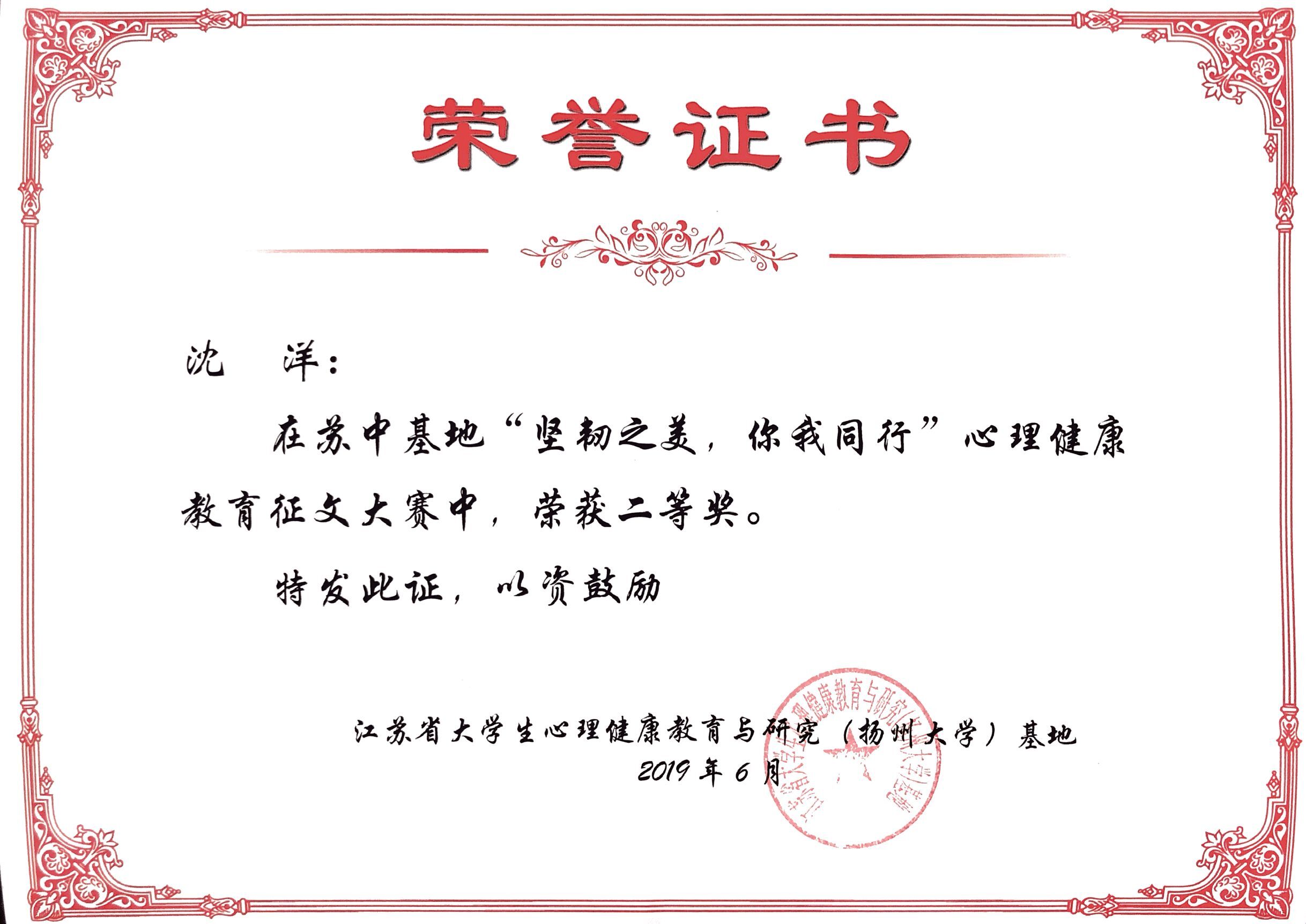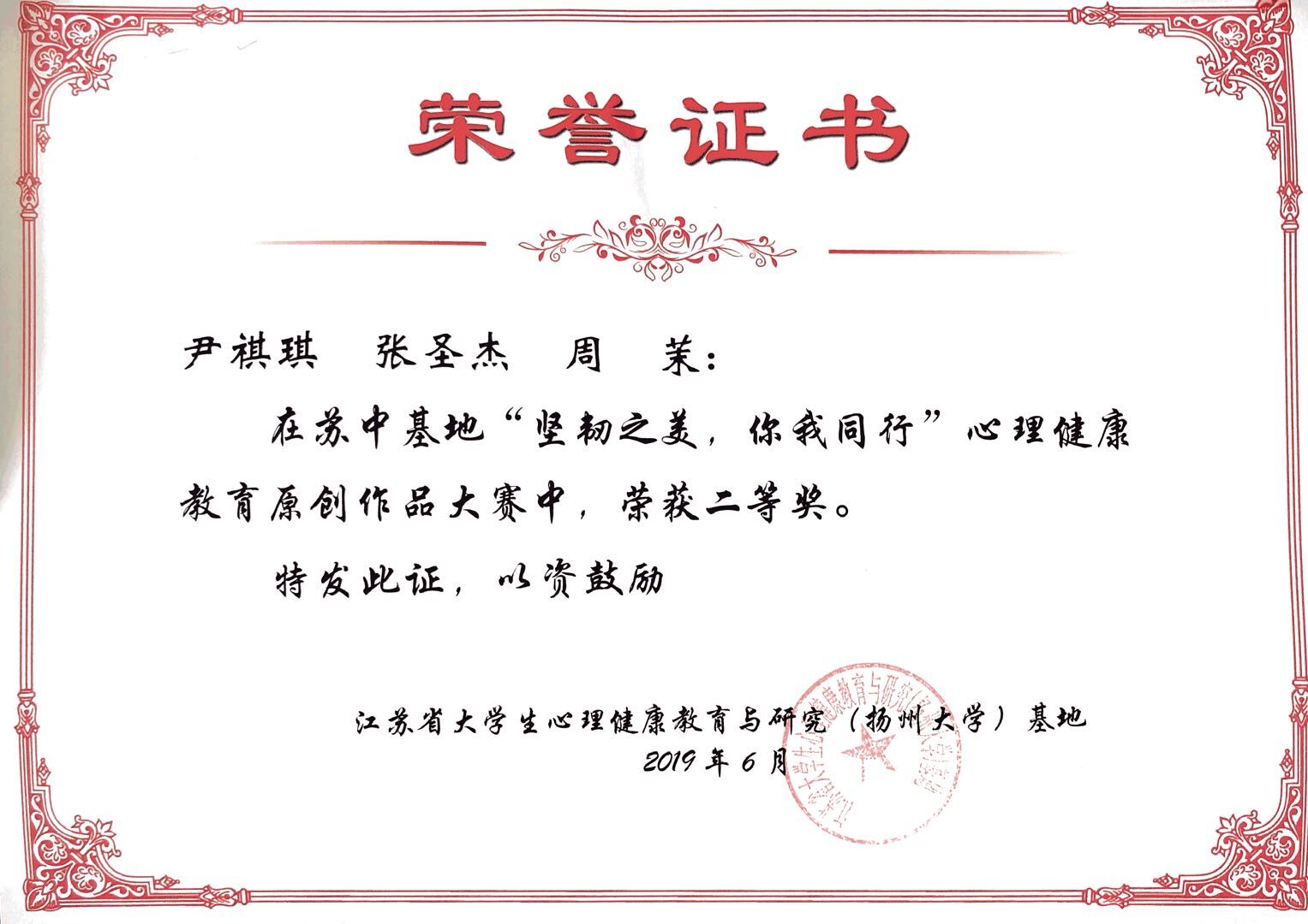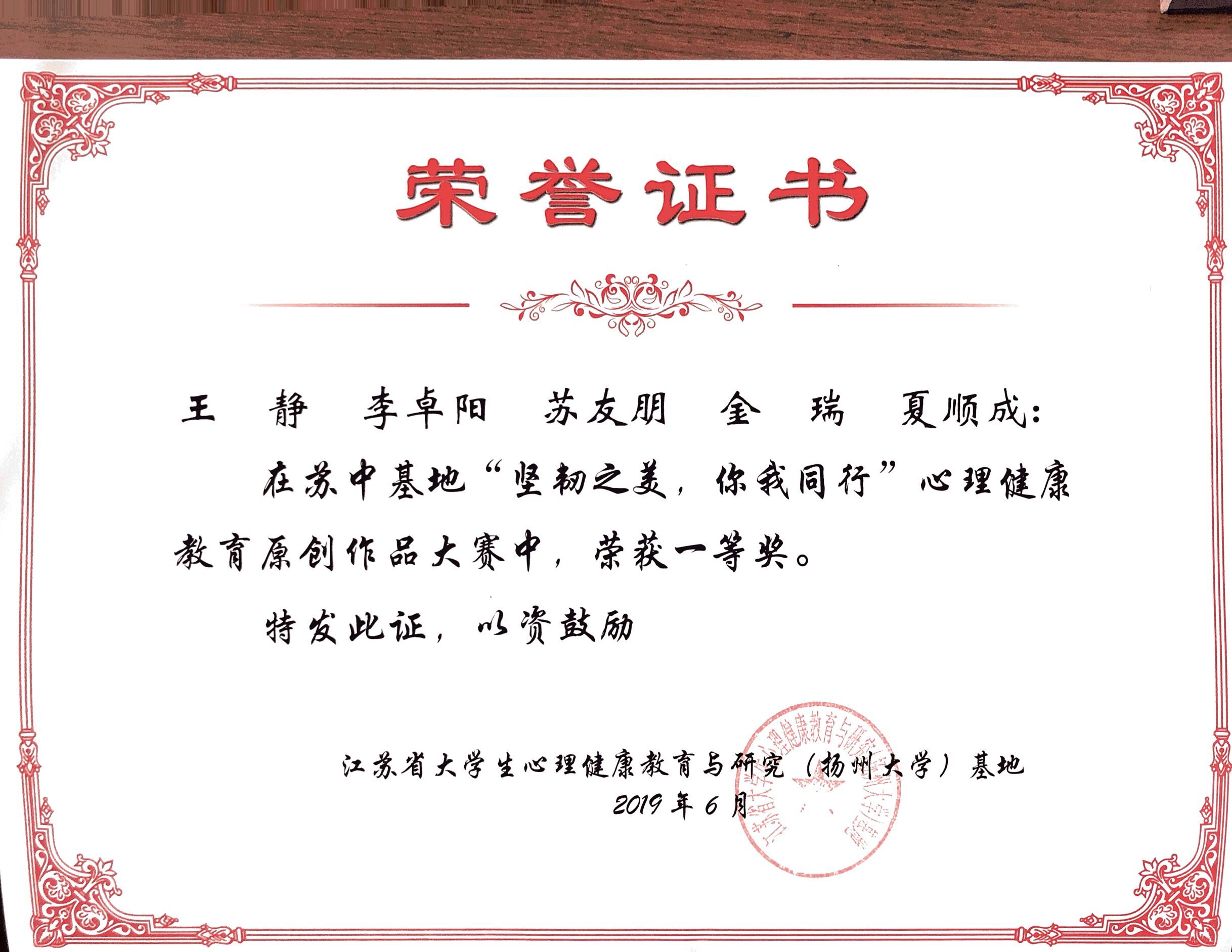 此次评选中,永利官网共报送作品四部,全部获奖。其中,在心理征文类作品评选中,陈玉凤同学的作品《请给我们的人生及时充电》获得一等奖,沈洋同学的作品《生命无常而我依旧坚强》获得二等奖。在原创作品评选中,由王静、李卓阳、苏友朋、金瑞、夏顺成同学共同创作的心理微电影《革己》获得一等奖,由尹祺琪、张圣杰、周茉同学共同创作的心理漫画《坚强者能在暴风之命运中奋斗》获得二等奖。