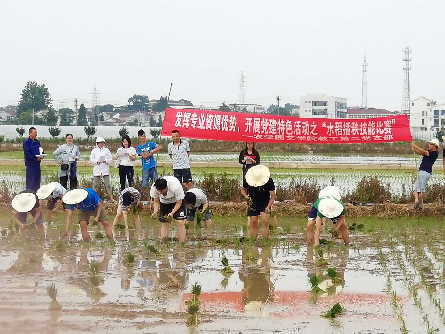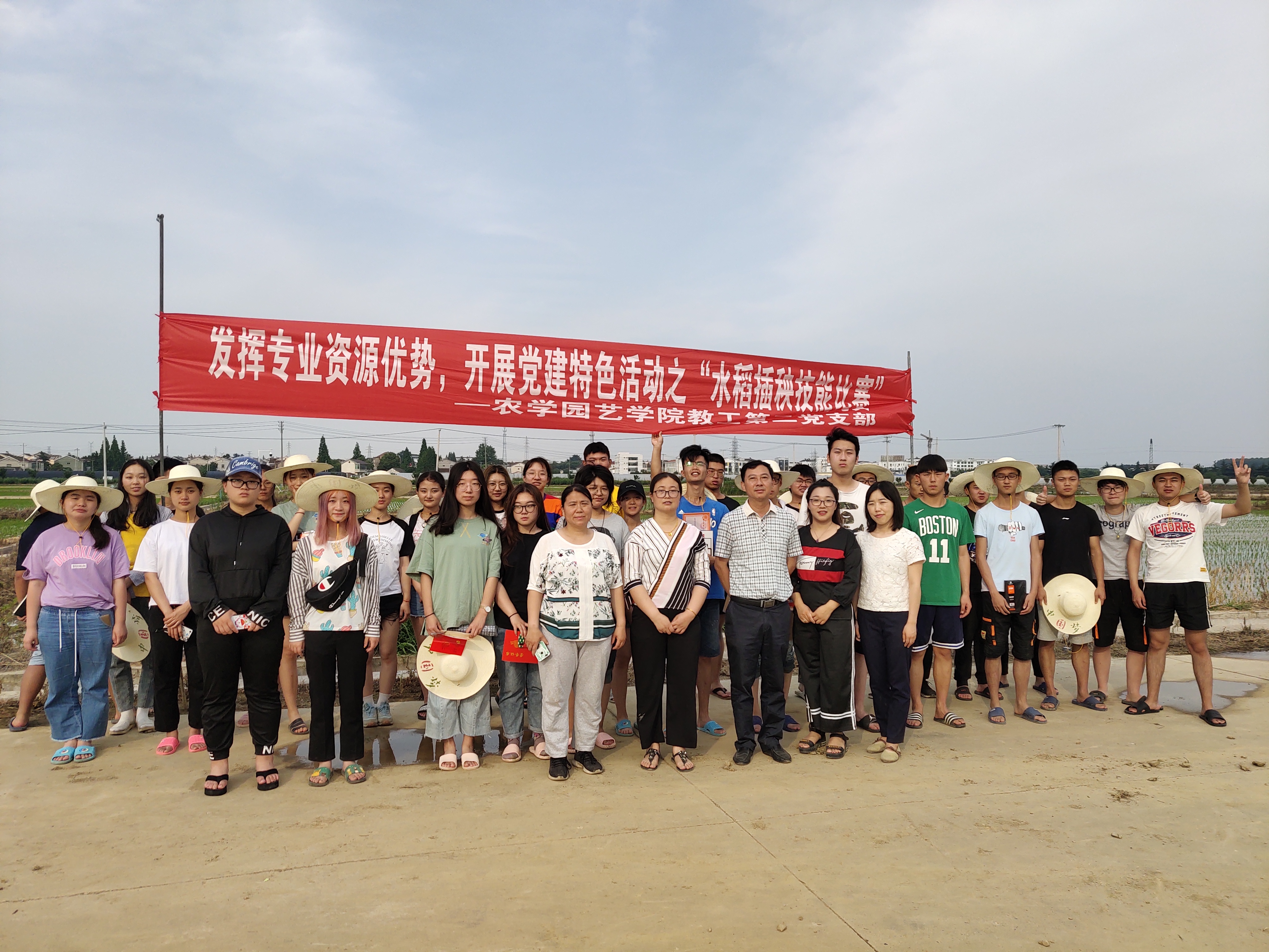 6月11日,农学园艺学院党总支组织教工第二党支部党员教师和部分积极分子、学生干部前往农博园开展“不忘初心、牢记使命”主题教育实践活动暨“水稻插秧技能比赛”。