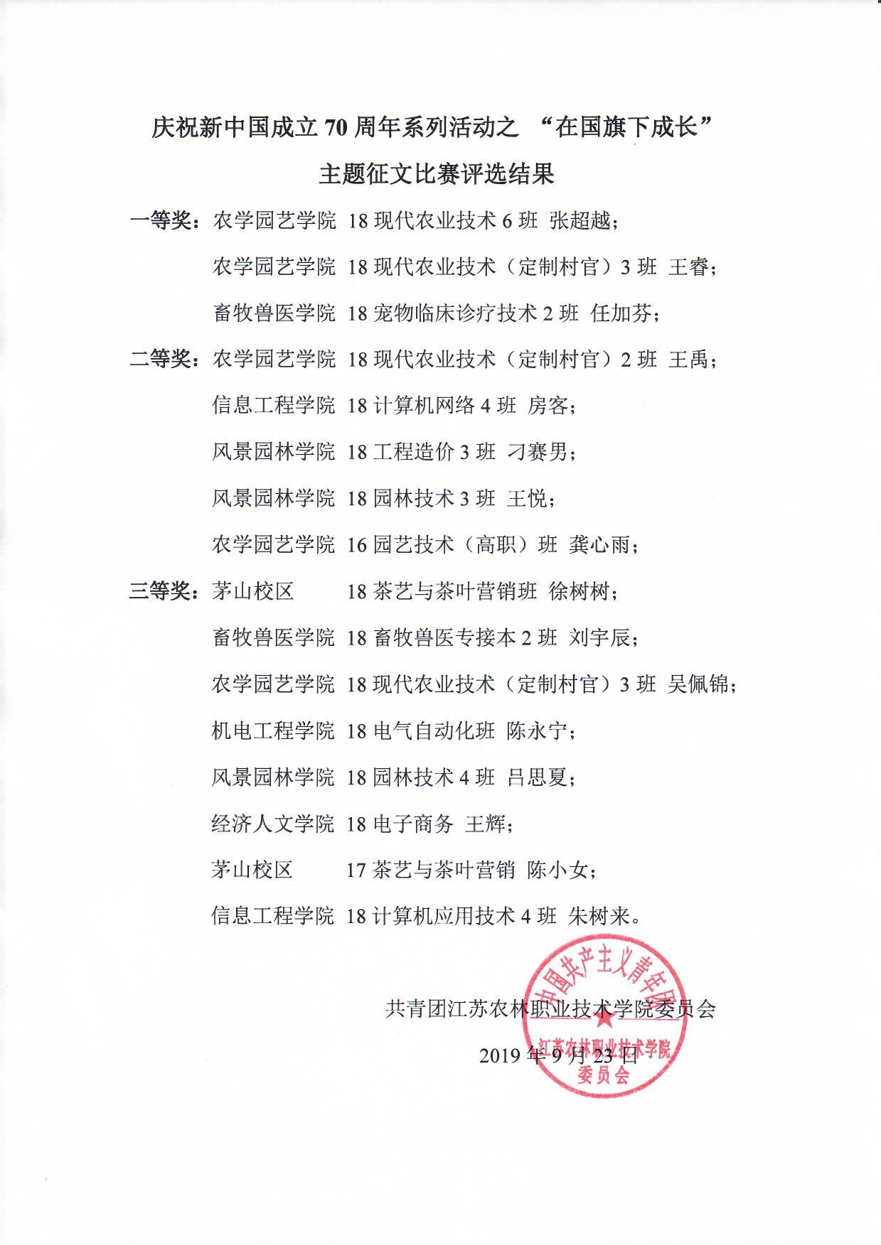 为隆重庆祝新中国成立70周年,弘扬伟大的爱国主义精神,按照团中央和团省委部署要求,9月5日至9月23日期间,永利官网组织开展“在国旗下成长”主题征文比赛,此次比赛由学院团委主办,农学园艺学院团委承办,各二级学院(校区)团委协办。